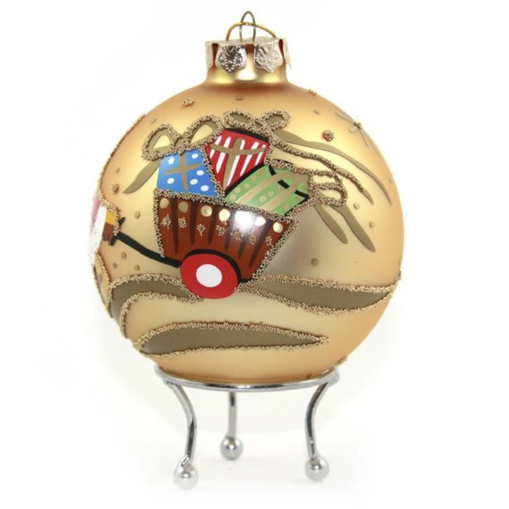 Make Delightful Memories This Festive Season With This Stunning Gold Christmas Bear With Cart Bauble. Crafted From Seamless, High Quality Gold Matt Glass And Featuring A Hand-Painted Christmas Bear With A Cart Full Of Presents, This Bauble Has Gorgeous Textured Embellishments And Can Be Personalised With A Name Of Your Choice In Our Unique Style Of Glitter Calligraphy. This Bauble Also Comes Ready To Hang With A Metal Top And Thread.