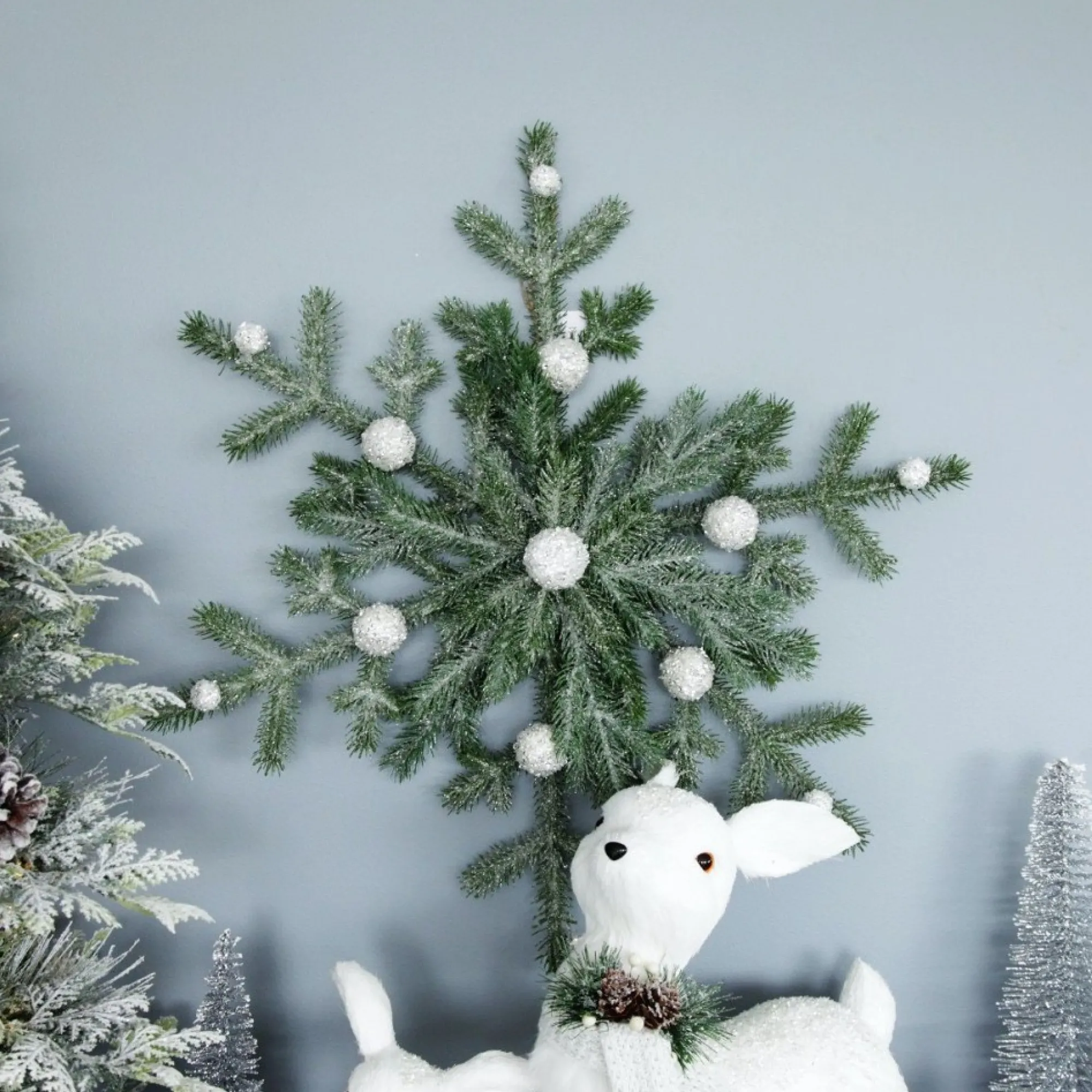 This Decoration Is Made From Durable Faux Pine Leaves Crafted Into The Shape Of An Intricate Snowflake And It Features White Sequin Balls Scattered Throughout As Well As A Delightful Dusting Of White Glitter All Over. The Snowflake Comes With Jute String Attached, Ready To Hang In Your Home.