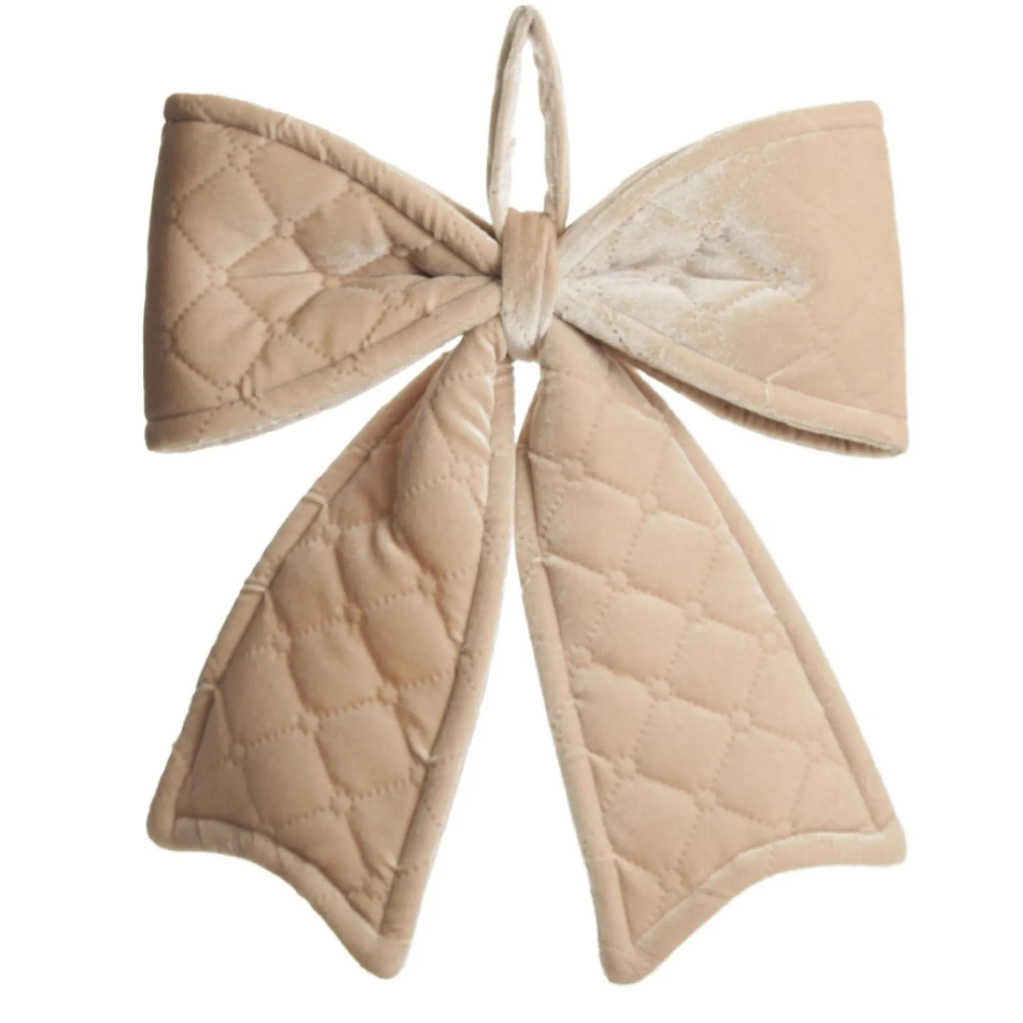 Add Elegance To Your Festive Decor With This Nude Pink Padded Quilted Velvet Bow. Crafted From Lush Velvet In A Neutral Nude Tone, This Bow Featuring A Unique Quilted Design With Padded Construction To Hold The Bow In Place. A Fabric Loop Makes It Easy To Hang The Bow When Decorating. Use To Embellish Your Christmas Tree, Garlands, And Wreaths Or To Adorn The Back Of Chairs For Your Festive Family Feasts. The Versatile And Reusable Nature Makes The Bow Perfect For Festive Crafts And Decor. Reuse Each Year As You Decorate Your Home For The Festive Season. Use Cable Ties Or String To Easily Affix The Bow Where Needed. The Bow Is Perfect For Any Luxe Elegant Christmas Decor Theme. Use As Part Of Coastal Chic Christmas Theme Paired With A Range Of Blue, White, And Nude Tones, Glitter, And Textural Elements.