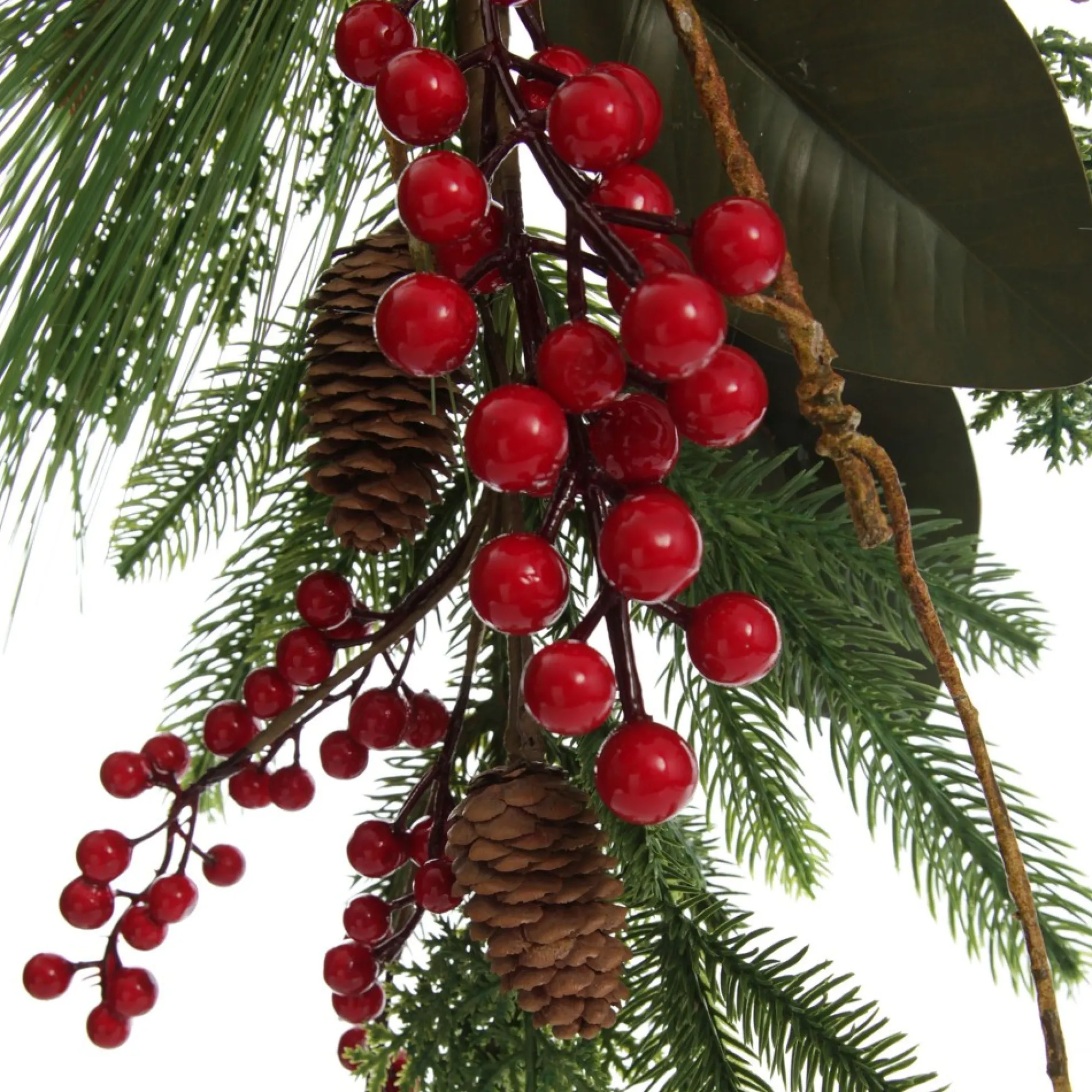 Create Rustic And Traditional Floral Displays With This Pinecone And Red Berry Mixed Leaf Christmas Spray. The Perfect Accent For Your Christmas Floral Arrangements.