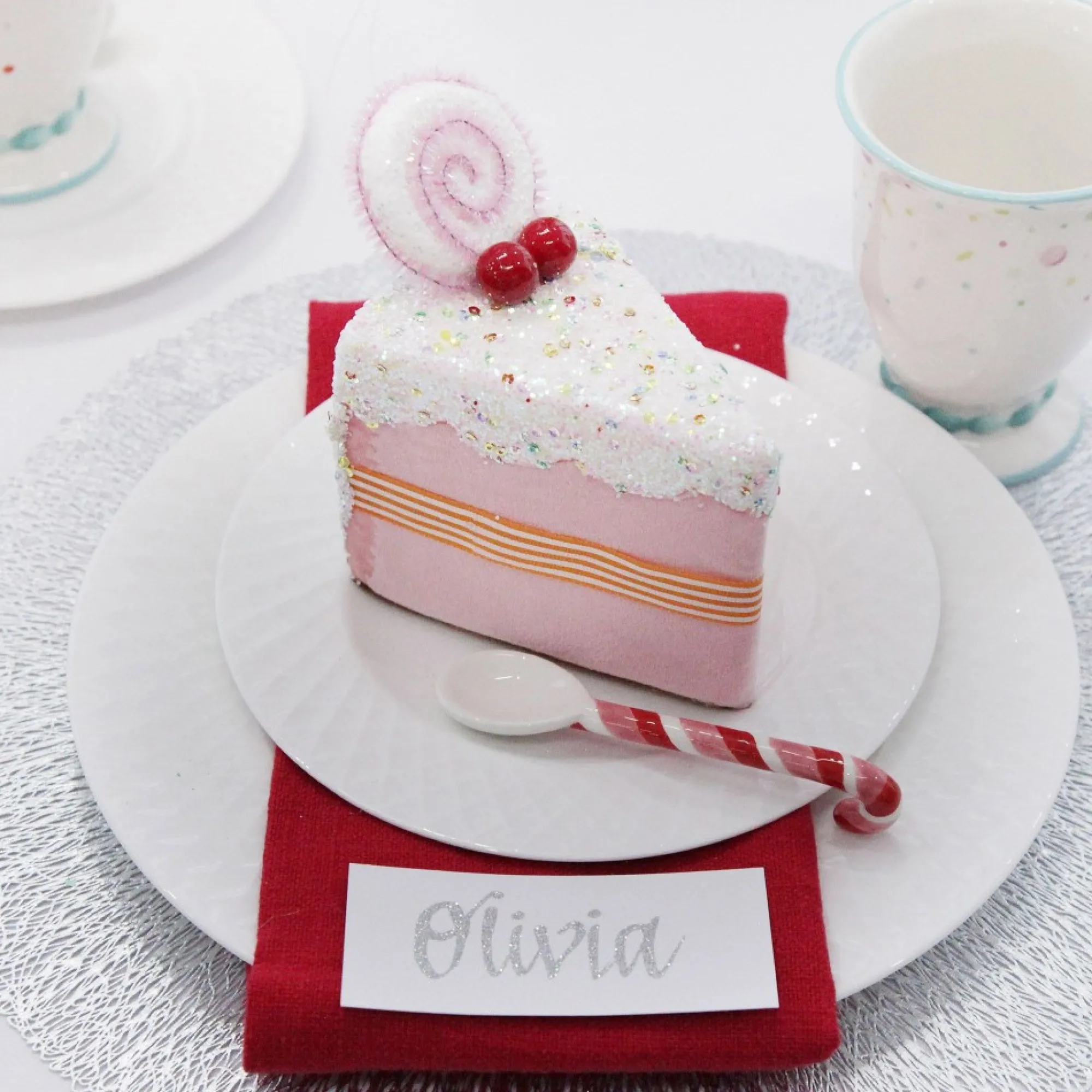 Sugar-Coat Your Festive Display With This Pink Velvet Cake Slice With Frosting And Sprinkles Tree Decoration. Crafted From Lightweight Base Materials Covered In Pink Velvet, This Cake Decoration Features White Glitter And Sequin Frosting And Delightful Candy Swirl And Red Berry Embellishments.