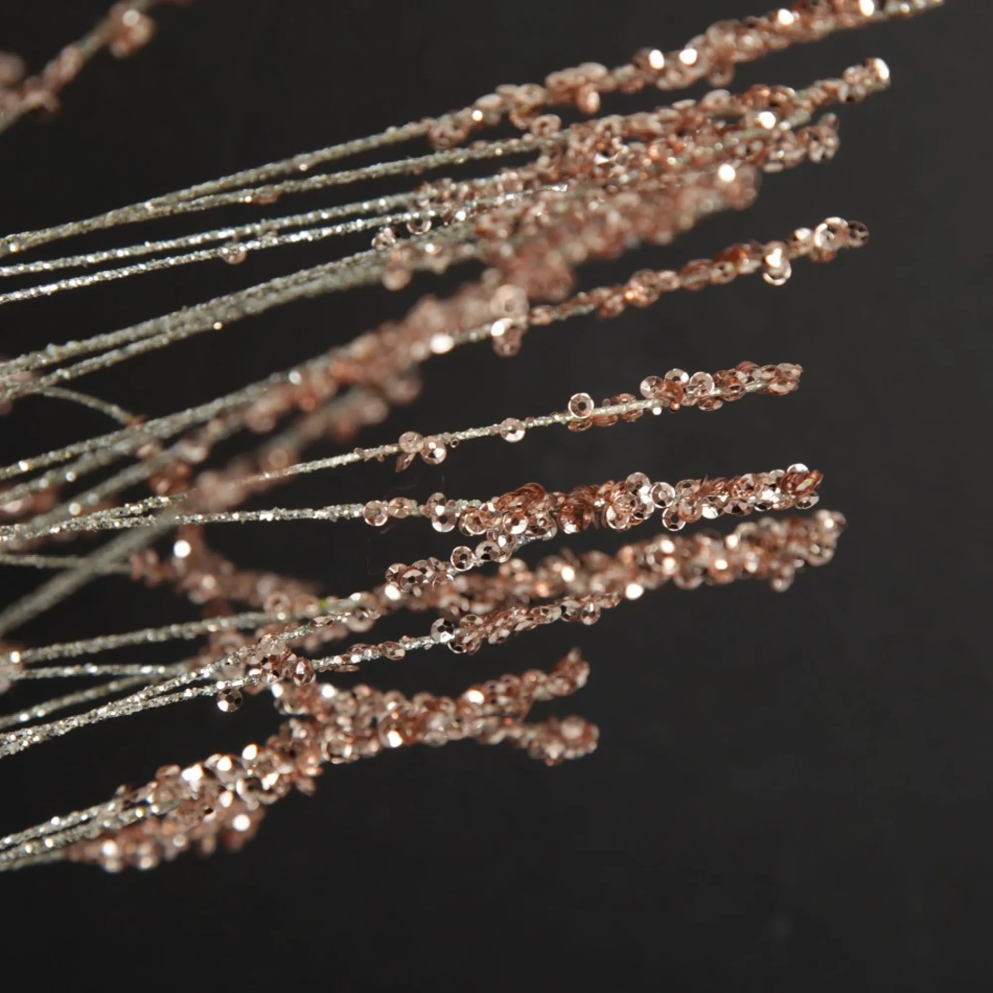 Add A Delightful Sparkling Accent To Your Floral Displays With This Rose Gold Glitter Grass Spray. Crafted With A Durable And Flexible Stem For Easy Placement, This Spray Features Collections Of Grass-Like Sprays With Delightful Rose Gold Glitter Details. This Spray Would Make A Unique Addition Of Texture And Sparkle To Your Next Floral Arrangement Or Christmas Tree Display. Sprays Are An Inexpensive And Versatile Option To Use For A Variety Of Crafting And Decorating Endeavours. Use To Embellish Your Christmas Tree, Decorate Your Own Garlands And Wreaths, Or Combine With Other Sprays And Foliage To Create Your Own Floral Arrangement In A Vase! You Could Even Use It To Create An Extravagant Tree Topper. Use The Sprays As A Whole Or Cut Them Down As Needed. The Luxe Rose Gold-Tone Is Perfect For A Feminine And Pastel Sugar Plum Or Boho Glam Christmas Decor Theme Combining Neutral Tones, Pinks And Rose Gold With Glitter And Glass To Create A Unique, Luxurious Display. Create Delightful Displays To Impress Your Guests And Celebrate The Most Wonderful Time Of The Year.