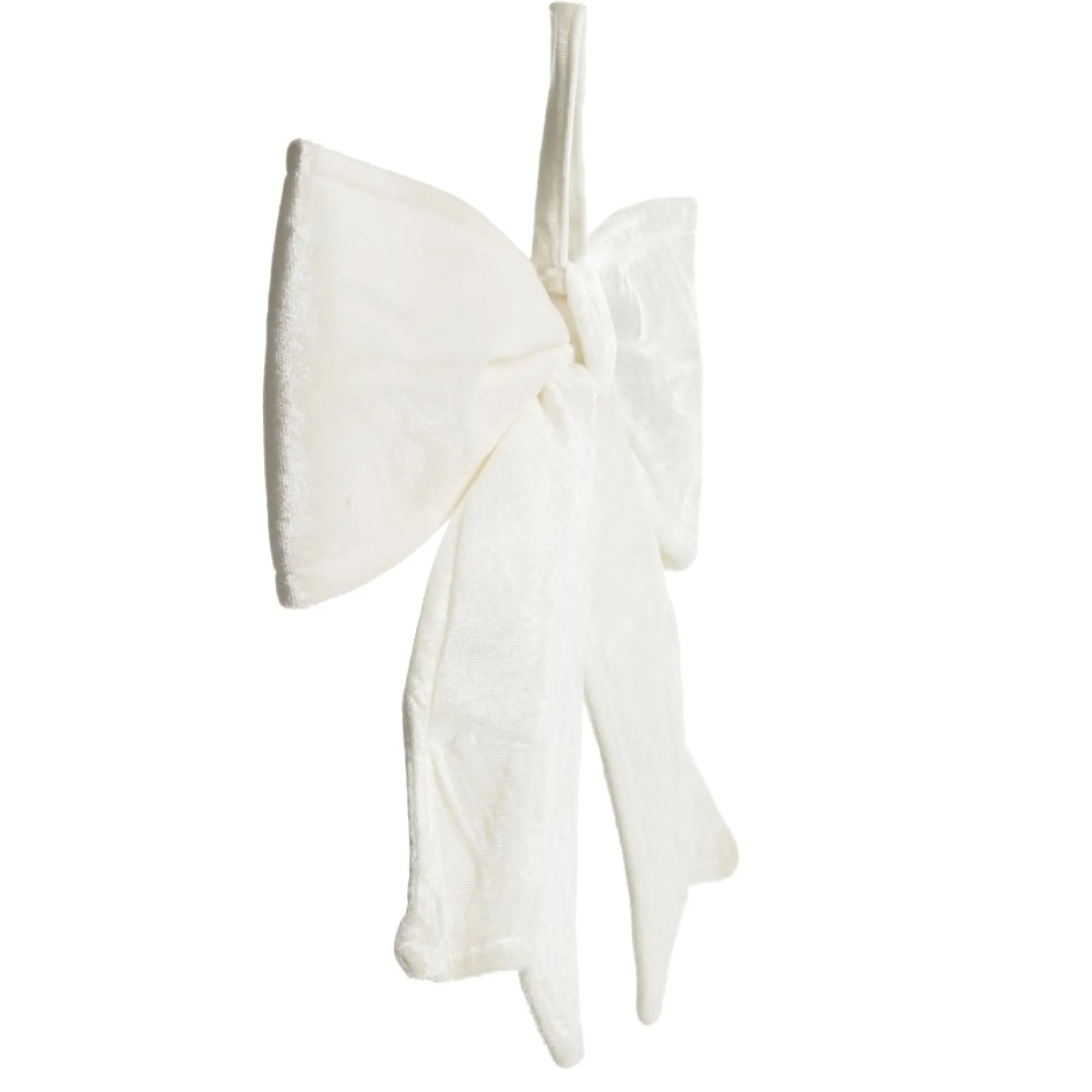 This Elegant White Padded Velvet Bow Will Enhance Your Festive Decor. Crafted From Soft Velvet In A Crisp White Tone, This Bow Features A Simplistic Design And Padded Construction To Help The Bow Hold Its Shape. A Fabric Loop Makes It Easy To Hang When Decorating. Versatile And Reusable, This Bow Can Be Used For Almost Any Festive Craft Or Decor Project. Use To Embellish Your Christmas Tree, Garlands, Wreaths And More! The Bow Also Makes An Excellent Embellishment For Chairs At Your Festive Feast Table. Use Cable Ties Or String To Easily Affix The Bow Where Needed. The Crisp And Neutral White Fabric Makes This Bow Perfect For Almost Any Theme You Choose!