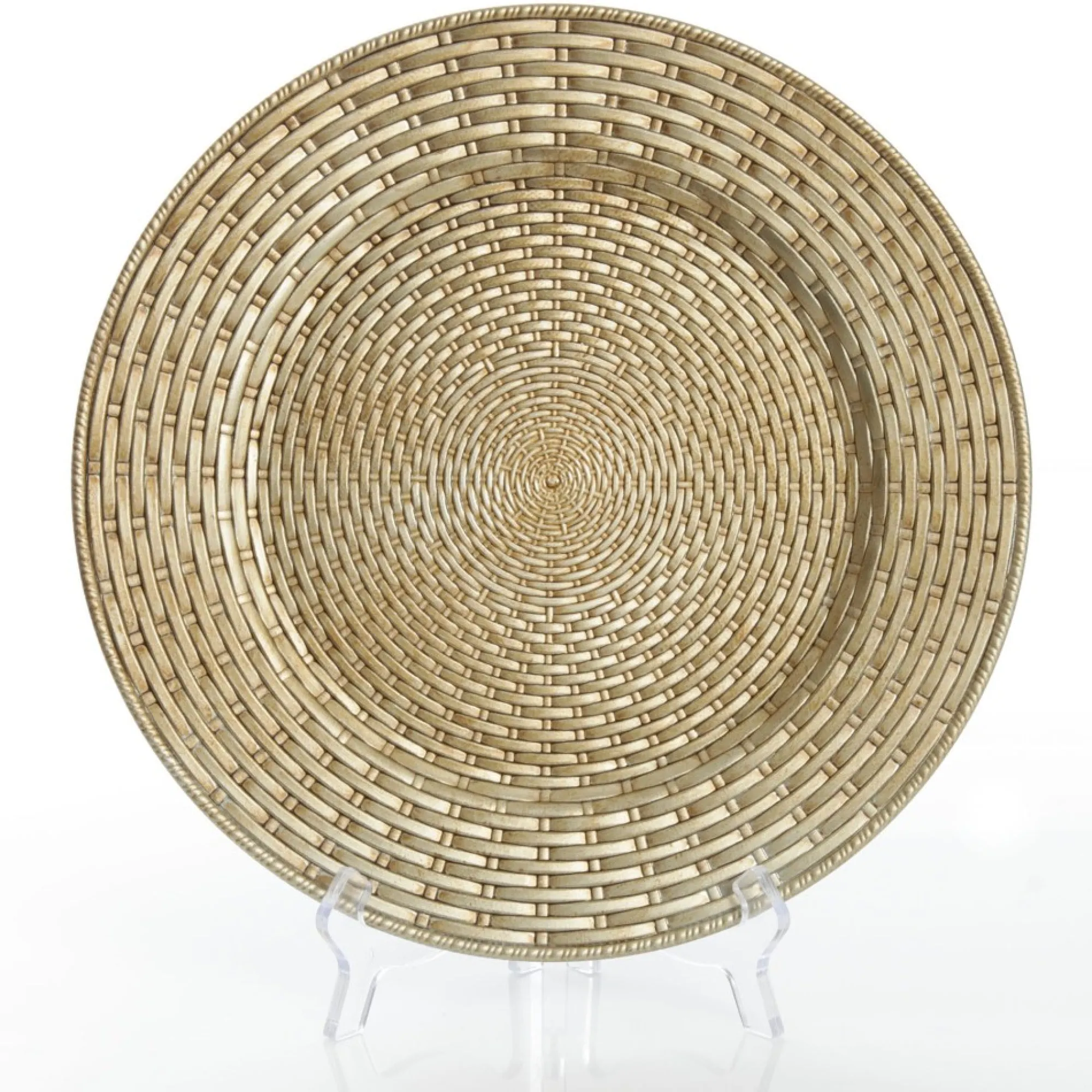 Create A Luxurious Table Display For Your Christmas Day Feast With This Stunning Antique Champagne Wicker Pattern Charger Plate. Crafted From Lightweight And Durable Acrylic Material, This Charger Plate Features A Stunning Antique Champagne Finish And A Distinctly Unique Wicker Pattern And Texture. The Antique Finish Gives The Plate A Realistic Effect. Use This Charger Plate As A Decorative Base Setting For Your Christmas Day Feast. Layer With A Unique Placement, Charger Plate, Then Place Regular Dinnerware On Top To Create A Lush, Layered, And Formal Display. This Charger Plate Would Be Perfect For A Traditional Or Boho Glam Christmas Decor Theme. Pair With Red, Green And Gold Tones For A Traditional Look Or With Neutral, Champagne, And Feminine Pink Tones For A Boho Glam Display. Create Displays That Will Impress Your Guests This Festive Season With This Stunning Antique Gold Wicker Charger Plate.