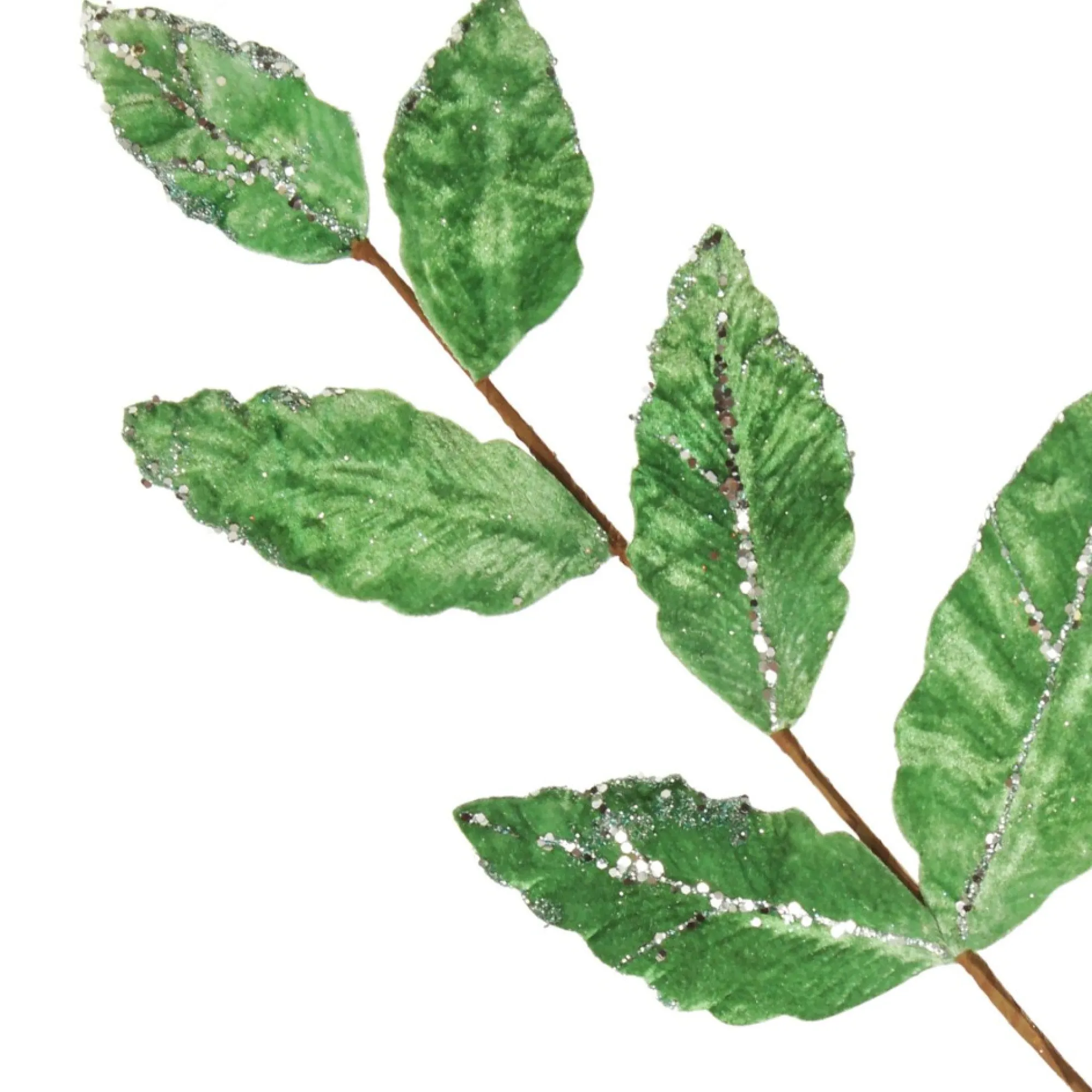 Add Sparkle And Joy To Your Festive Floral Arrangements With Our Apple Green Leaf Spray With Silver Sequins. Crafted With A Durable And Flexible Stem For Easy Placement, This Spray Features Apple Green Coloured Velvety Leaves With Textured Lines And Sparkling Glitter Embellishments. A Gorgeous And Unique Addition To Any Floral Arrangement. Leaves Vary In Size And Glitter Coverage.