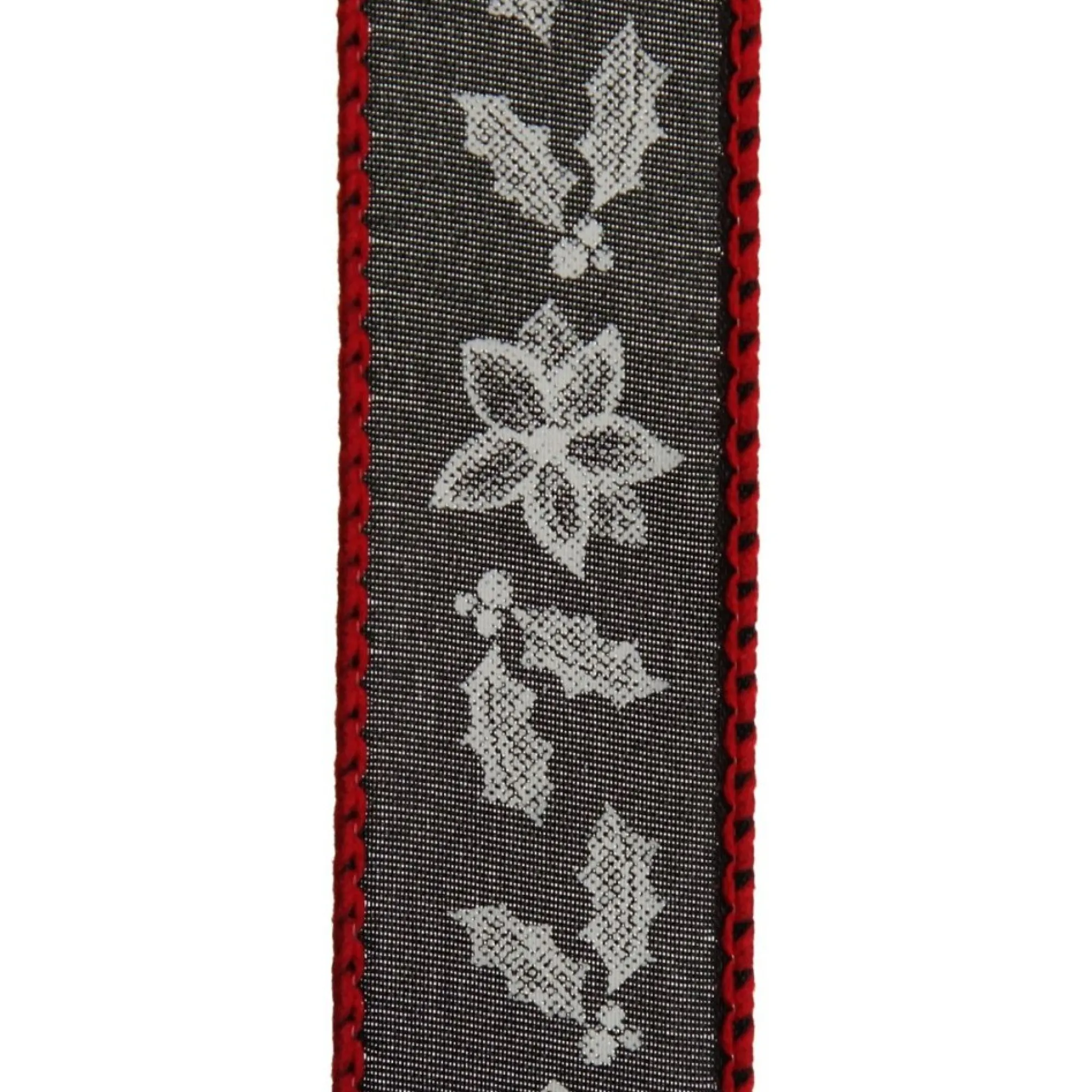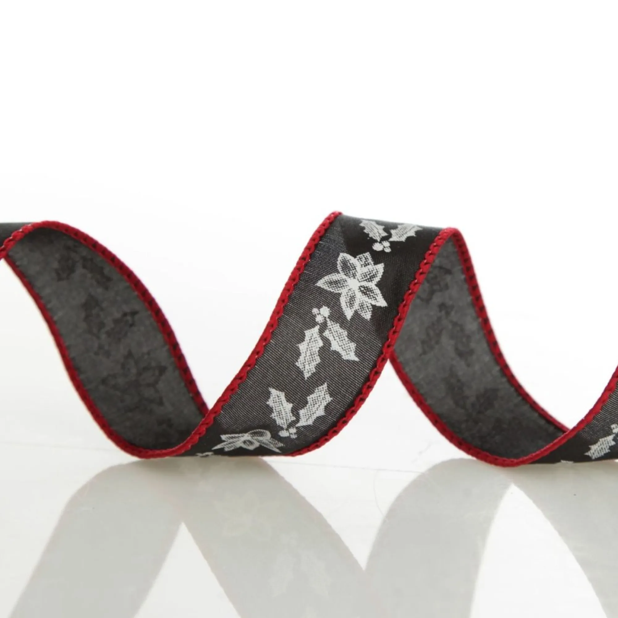 Made From Black Fabric With A Red Wired Trim, This Ribbon Features A Gorgeous White Holly Design. The Wired Edge Makes It Perfect For Creating Beautiful Bows And Bellows That Hold Their Shape.