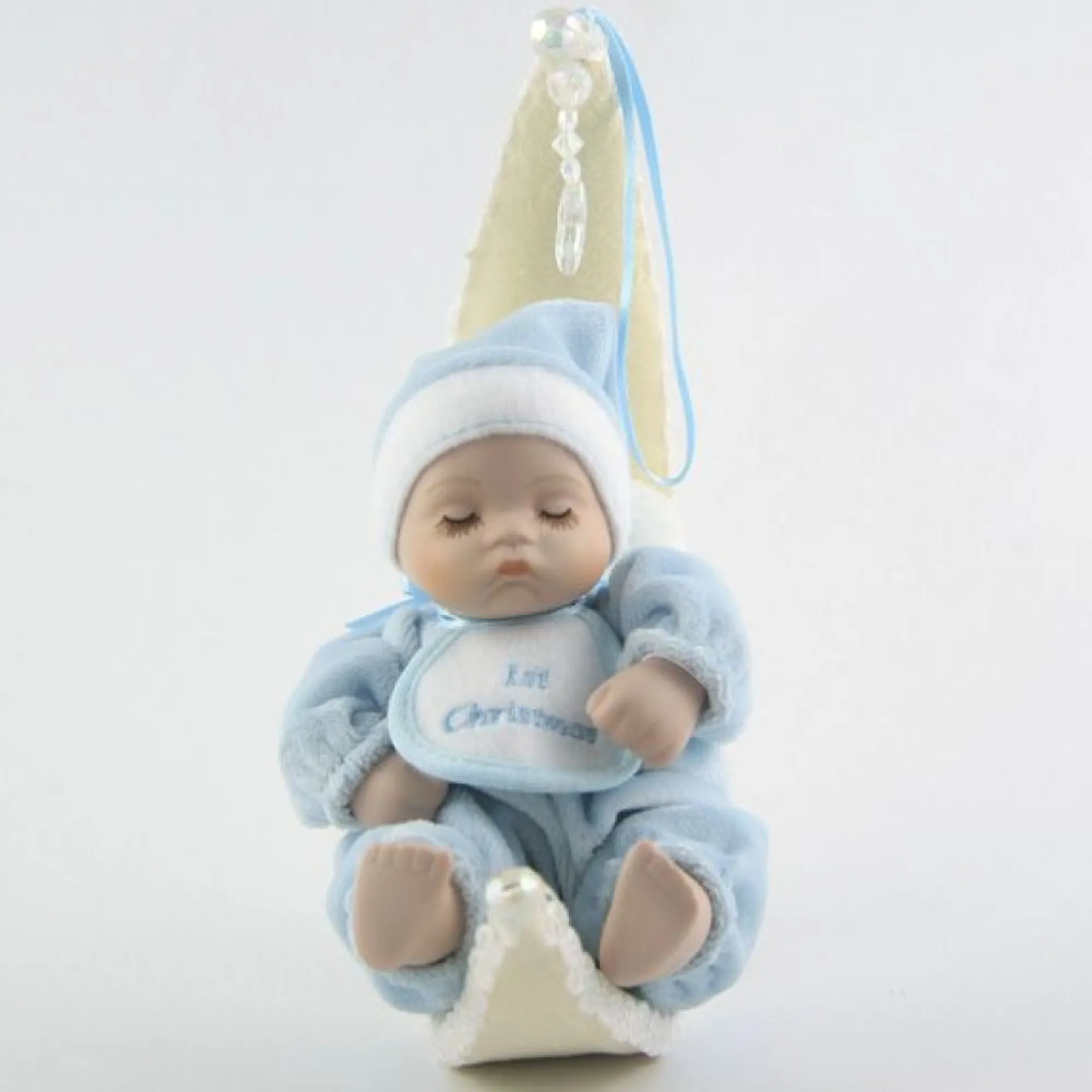 This Beautiful Musical Ornament Is Made Of Velveteen And Ceramic. It’s A Lovely Way To Help Celebrate A Baby Boy’s Very First Christmas. The Bib Reads ‘First Christmas’ And When Wound Up, It Plays Twinkle Twinkle Little Star.