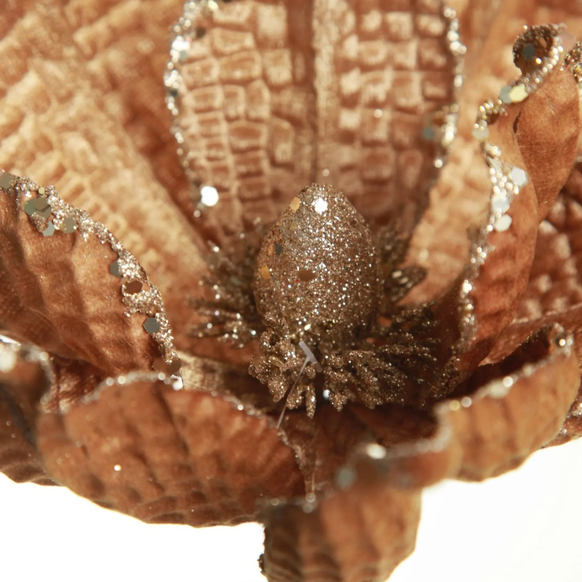 All I Want For Christmas Is This Brown Velvet Magnolia Flower Clip – Elegantly Inspired By Rustic Farmhouse Decor. With Its Natural And Neutral Tones, This Decoration Is Crafted From High-Quality Velvet To Be Both Flexible And Durable. The Stunning Brown Tone Gives It That Warm And Elegant Charm We Are All Craving For Our Homes, And The Glitter Gold Finish Adds A Touch Of Sparkle And Glamour. Our Flower Clip Is The Perfect Way To Add A Touch Of Natural Beauty And Rustic Charm To Your Festive Displays.