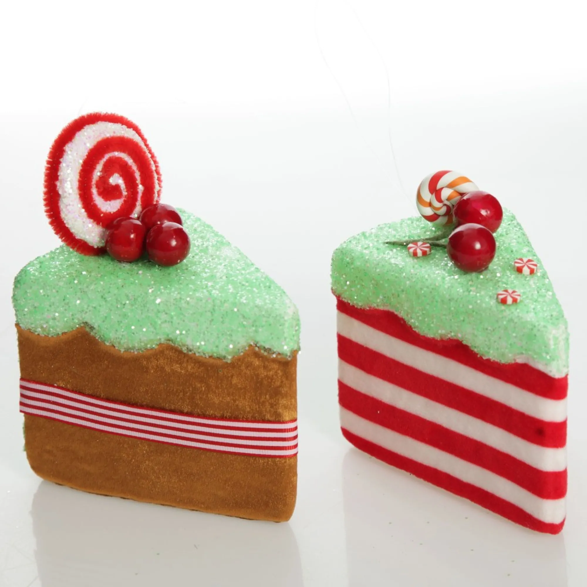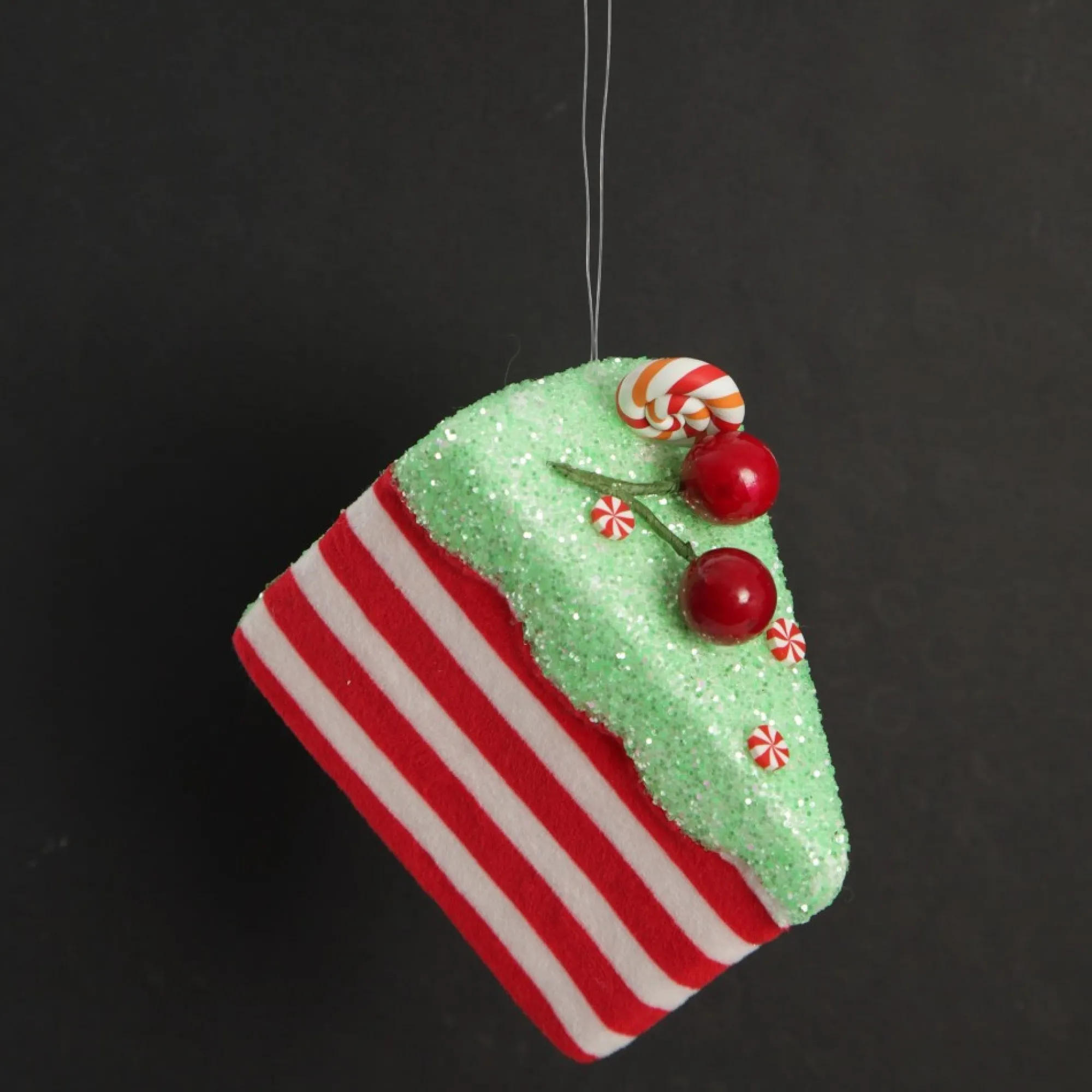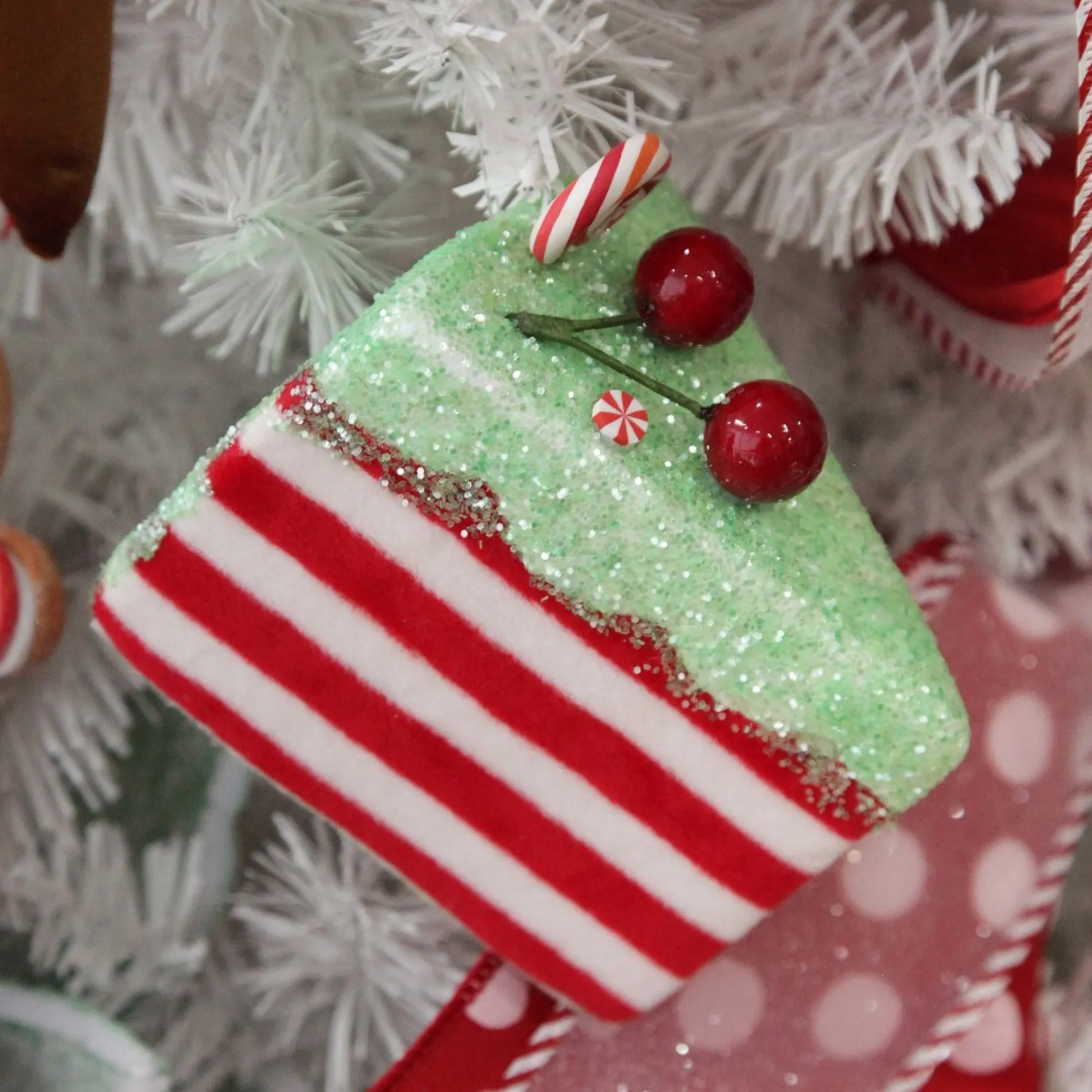 Sugar-Coat Your Christmas Tree With This Candy Cane And Mint Velvet Cake Slice Christmas Tree Decoration. Crafted From The Lightweight Material, Easy To Hang, This Velvet Cake Slice Decoration Features Gorgeous Mint Glitter Icing, A Red And White Striped Base, And Sweet Candy And Berry Embellishments On Top.