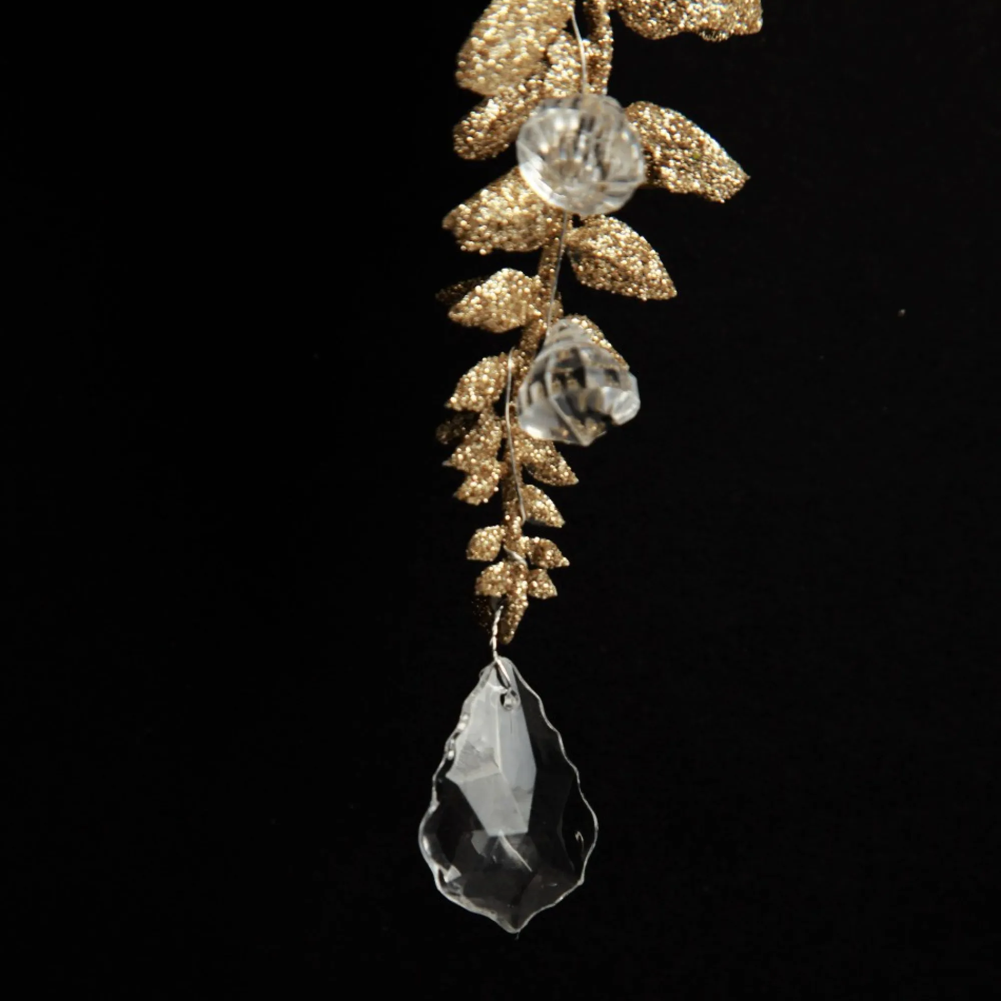 Step Into An Luxurious Realm Of Holiday Splendour With Our Champagne Glitter Leaf And Pearls Long Tree Decoration. Featuring A Collection Of Leaves Coated In Stunning Champagne Glitter And Embellished With Crystal Pearls. It’s The Perfect Item To Bring Luxury And Style To Your Home For The Christmas Season.
