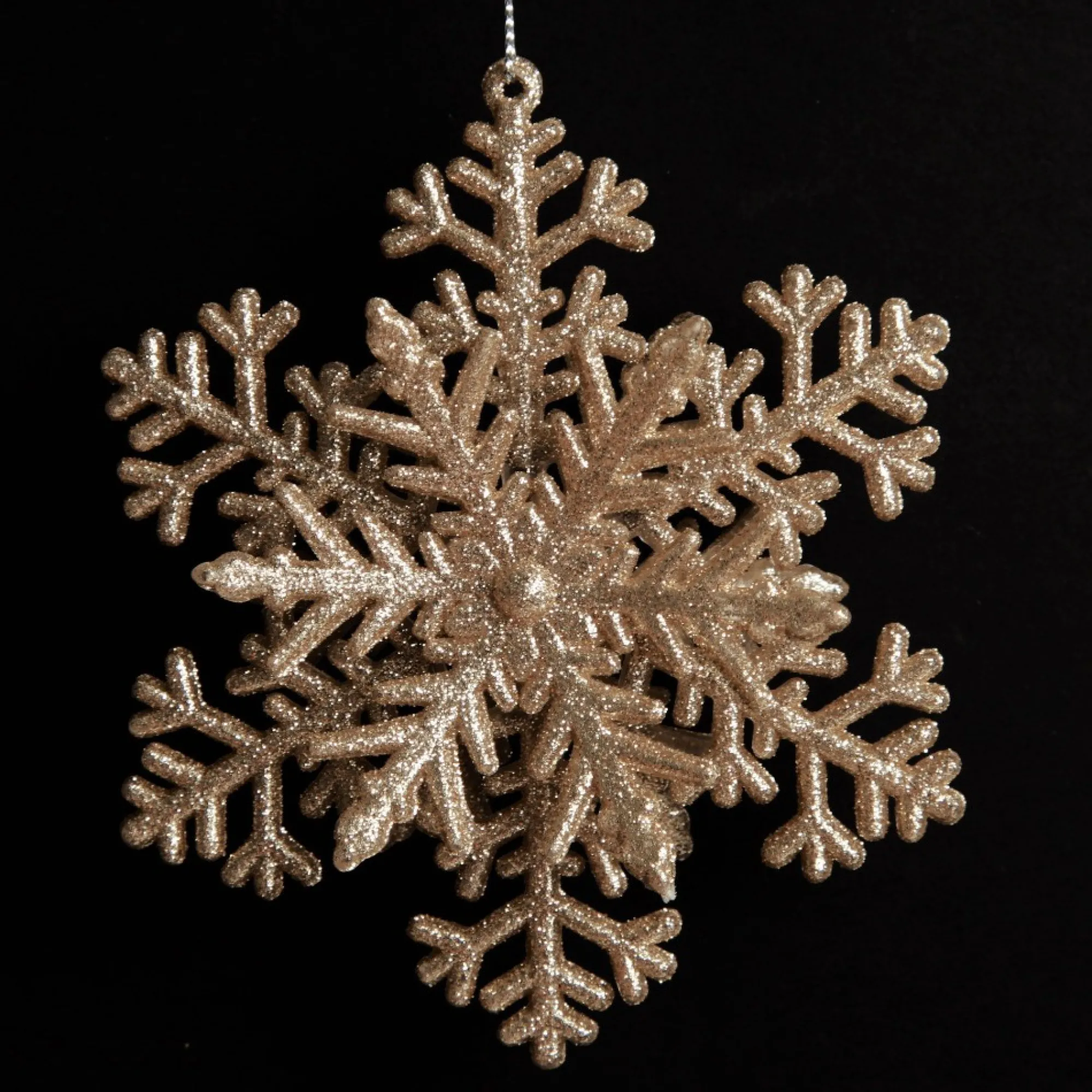 Immerse Yourself In A World Of Enchanting Elegance With Our Meticulously Crafted Champagne Glitter Snowflake Christmas Tree Decoration. THis Snowflake Is Made From Durable Acrylic, Crafted Into Unique And Intricate Patterns And Coated In A Delightful Dusting Of Champagne Glitter So, You Can Create The Unique And Stunning Christmas Tree Display You Have Always Dreamed Of Creating.