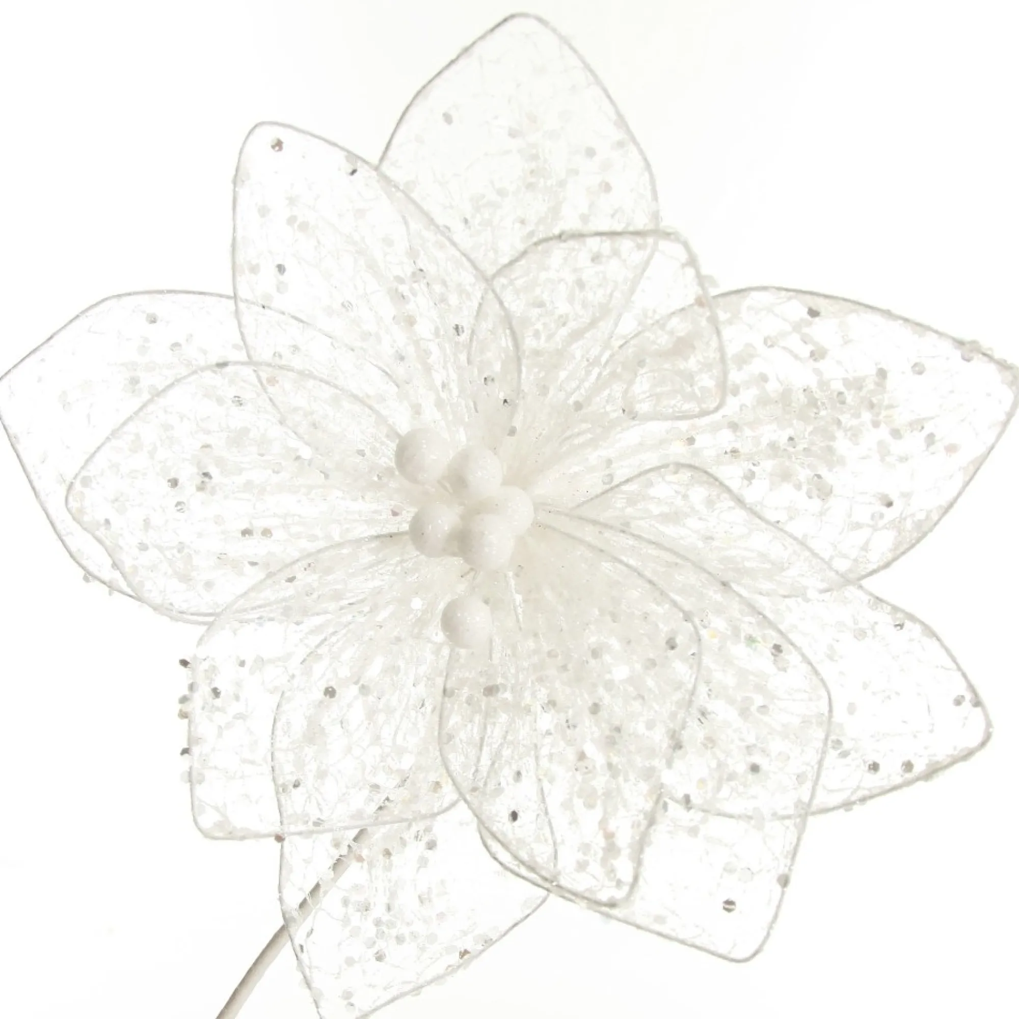 Add A Touch Of Elegance To Your Festive Displays This Christmas With Our Delicate White Mesh And Sequin Flower Stem. This Beautiful Flower Stem Is The Perfect Addition For A Christmas Decorating Style That Wants To Capture A Magical Winter Wonderland. Featuring Lush-Layered Petals With A Mesh Design And Finished With Shimmering Sequins, Curated To Reflect The Glistening Beauty Of Winter.