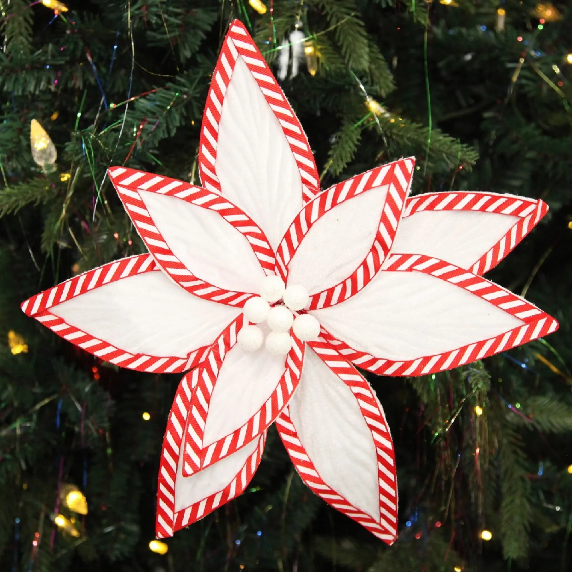 Let The Whispers Of Retro Festivity Grace Your Holiday Decor With This Flower Stem – Perfect For Anyone Who Loves Decorating And Is Looking For Christmas Products And Ideas That Will Truly Elevate Their Celebrations. Shipped From Australia By The Christmas Cart, This Festive White Flower Stem With Striped Edge Is The Perfect Way To Infuse Vintage Charm To Your Christmas Decorating. So Don’T Wait, Order Yours Today!