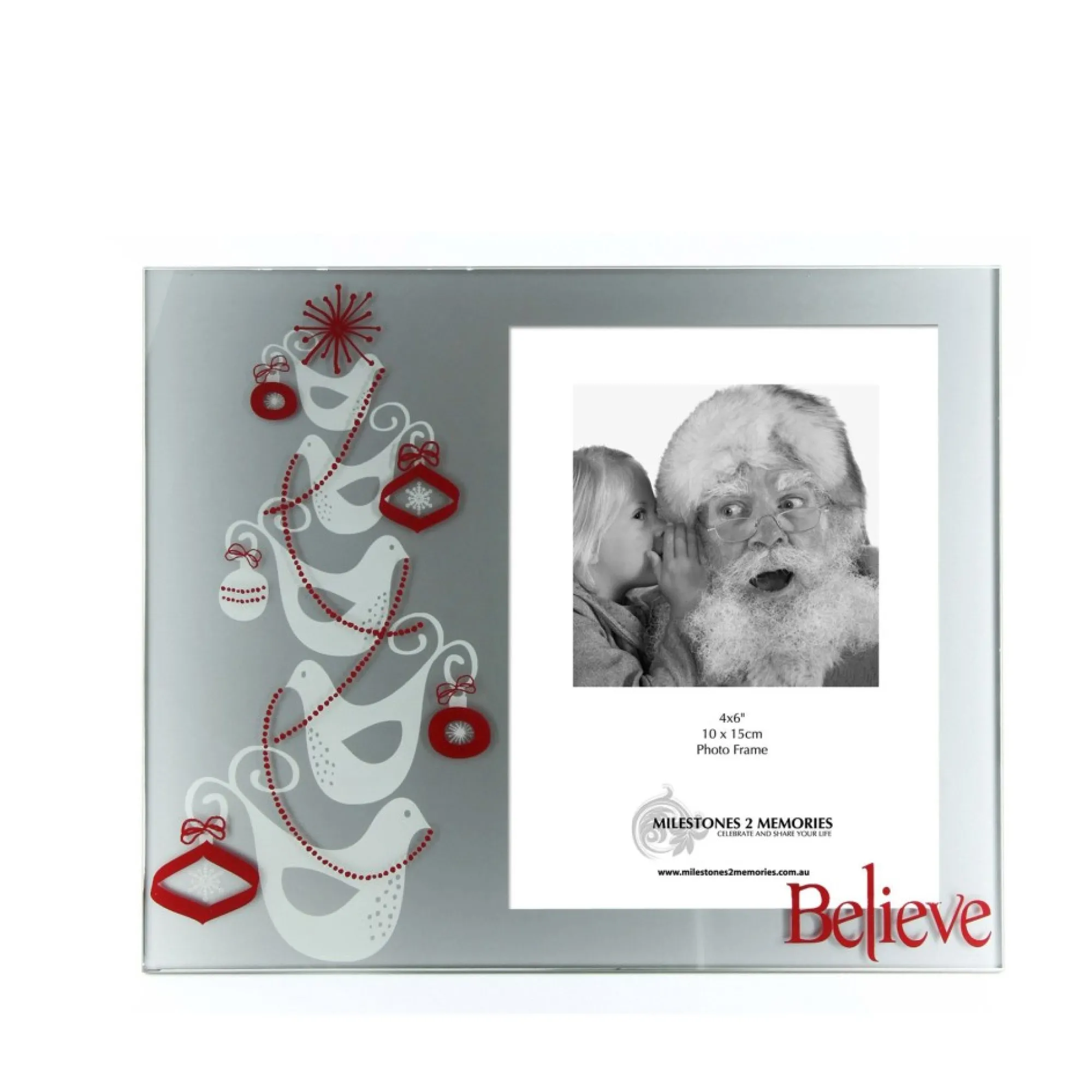 A Beautiful Modern Glass Frame With Printed Christmas Doves Design. Holds 4X6 Inch (10X15Cm) Photo. Add Your Santa Photo And It Makes The Perfect Gift For Family And Friends.