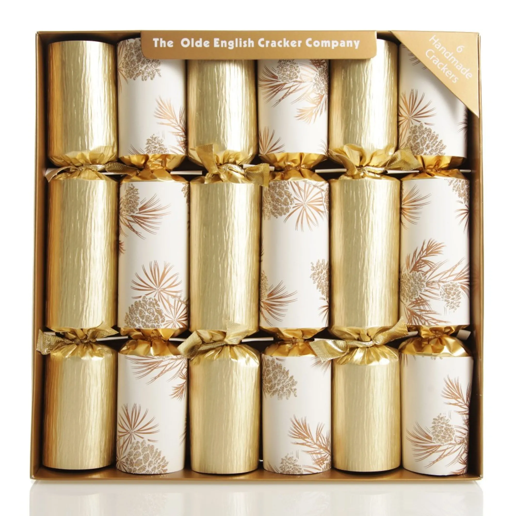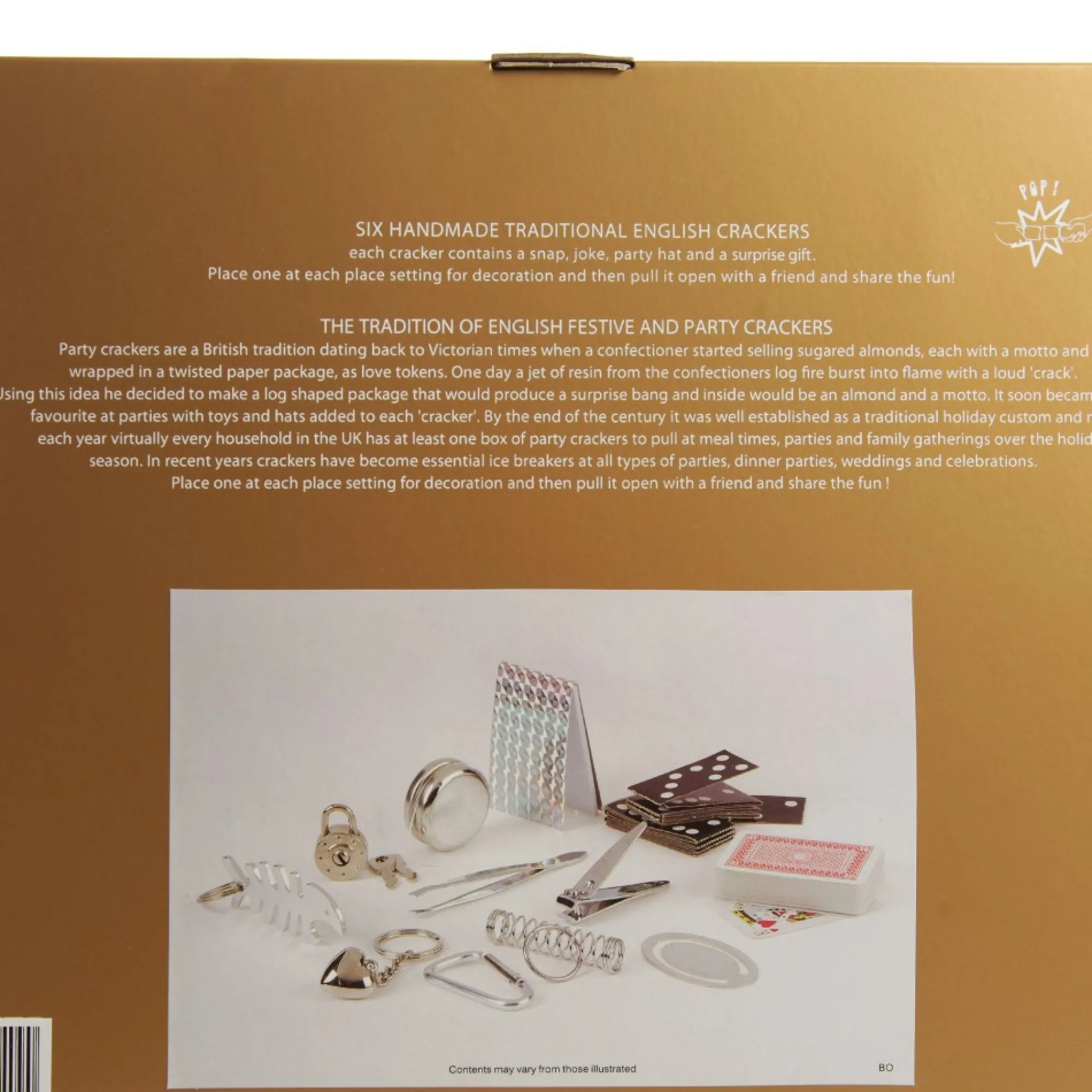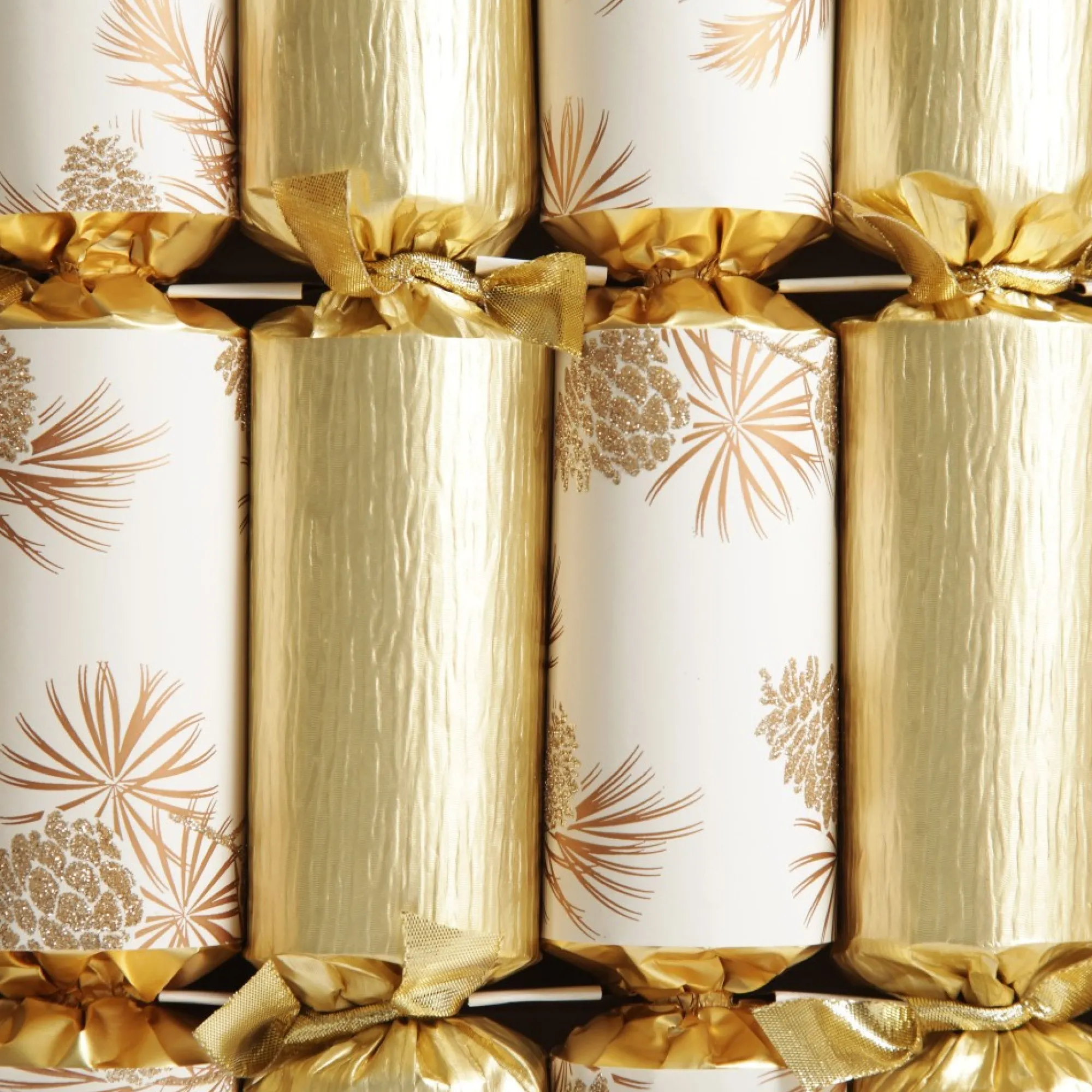 This Set Includes 6 Bon Bons In Two Varying Designs – A Textured Matt Gold Design And An Ivory With Gold Foliage And Glitter Design. Each Bon Bon Contains A Snap, Joke, Party Hat, And Specially Selected Gift.
