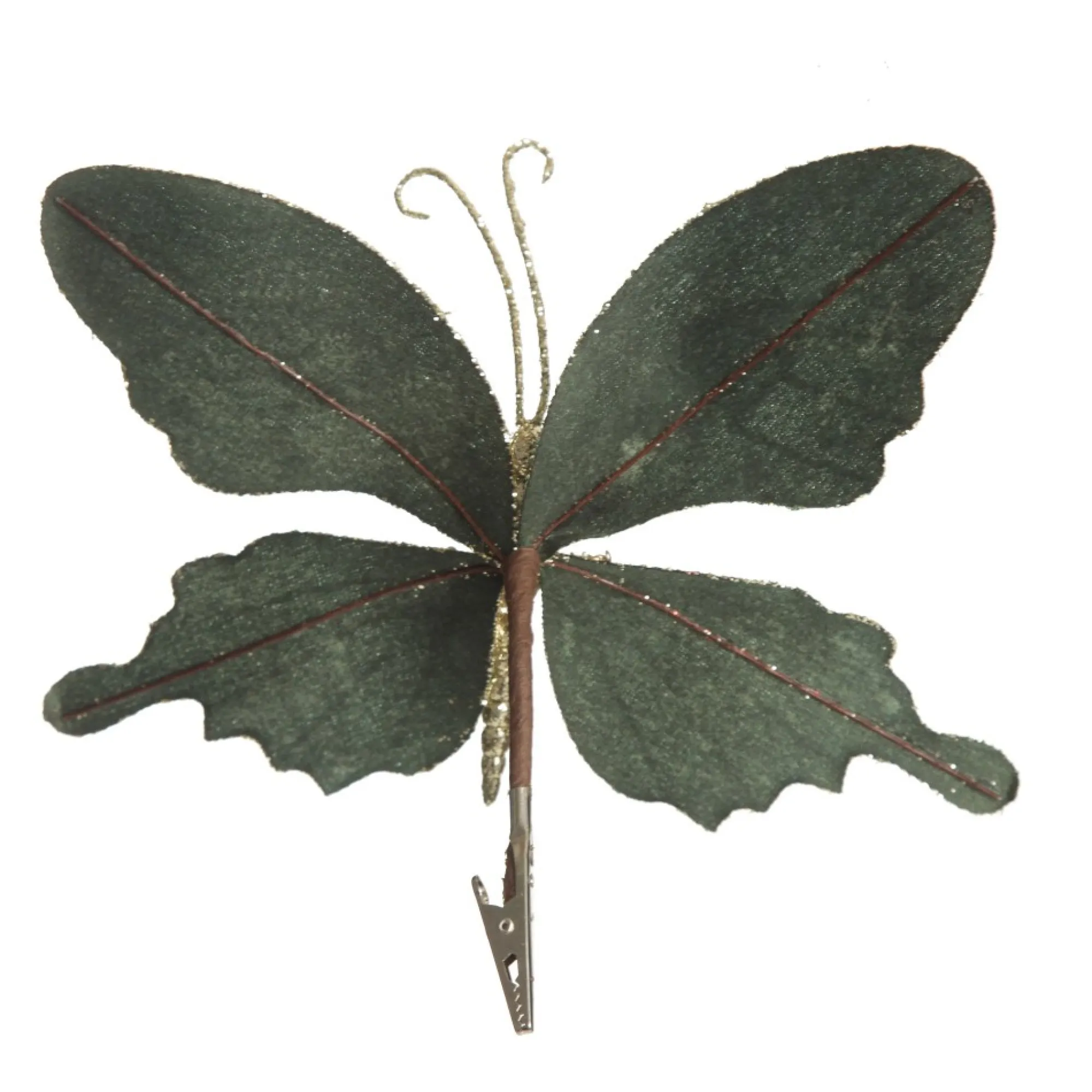 Add Elegance And Whimsy To Your Festive Crafts And Decor Using This Green Velour And Glitter Butterfly Clip. Crafted From Lightweight Materials, This Butterfly Features Lush Green Velour Wings Embellished With Champagne Glitter Highlights. The Wings Are Wires For Easy Placement And A Clip Affixed To A Stem On The Back Of The Butterfly Makes It Easy To Secure When Crafting And Decorating. Unique Clip Decorations Are Versatile And Reusable Making The Perfect Addition To Any Festive Craft And Decor Project. Clip This Butterfly Onto Your Christmas Tree, Garlands, Wreaths, Floral Arrangements And More To Create A Unique And Eclectic Display. The Butterfly Could Even Be Used As A Gift Topper Or Embellishment For Table Place Settings At Your Christmas Feasts. This Butterfly Is Perfect For A Unique Pink Christmas Dreams Decor Theme Combining An Assortment Of Pink And Sage Green Tones To Create A Seamless And Sophisticated Display. Stray From The Traditional To Create A Stunning And Unique Display In Your Home.