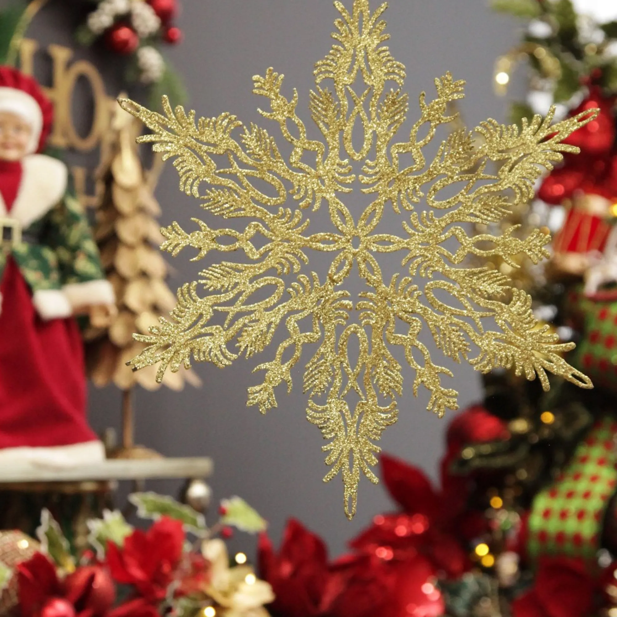 Create Unique Displays To Celebrate Christmas In Your Home With This Intricate Gold Hanging Snowflake Decoration. This Snowflake Features A Unique And Intricate Pattern Cut From Flexible Acrylic And Coated In A Later Of Gold Glitter. Hang This Snowflake From Any Wall, Door, Or Window In Your Home.