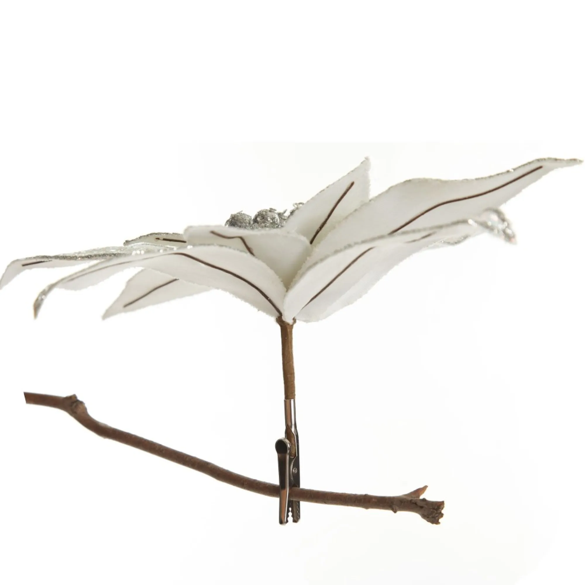 This Stunning Iridescent Glitter Poinsettia Flower Clip Will Enhance Your Festive Floral Displays. Featuring Layered Glitter Petals With An Iridescent Finish, Silver Glitter Trim And Pollen Details. Extending From The Base Of The Flower Is A Short, Durable, And Flexible Stem.