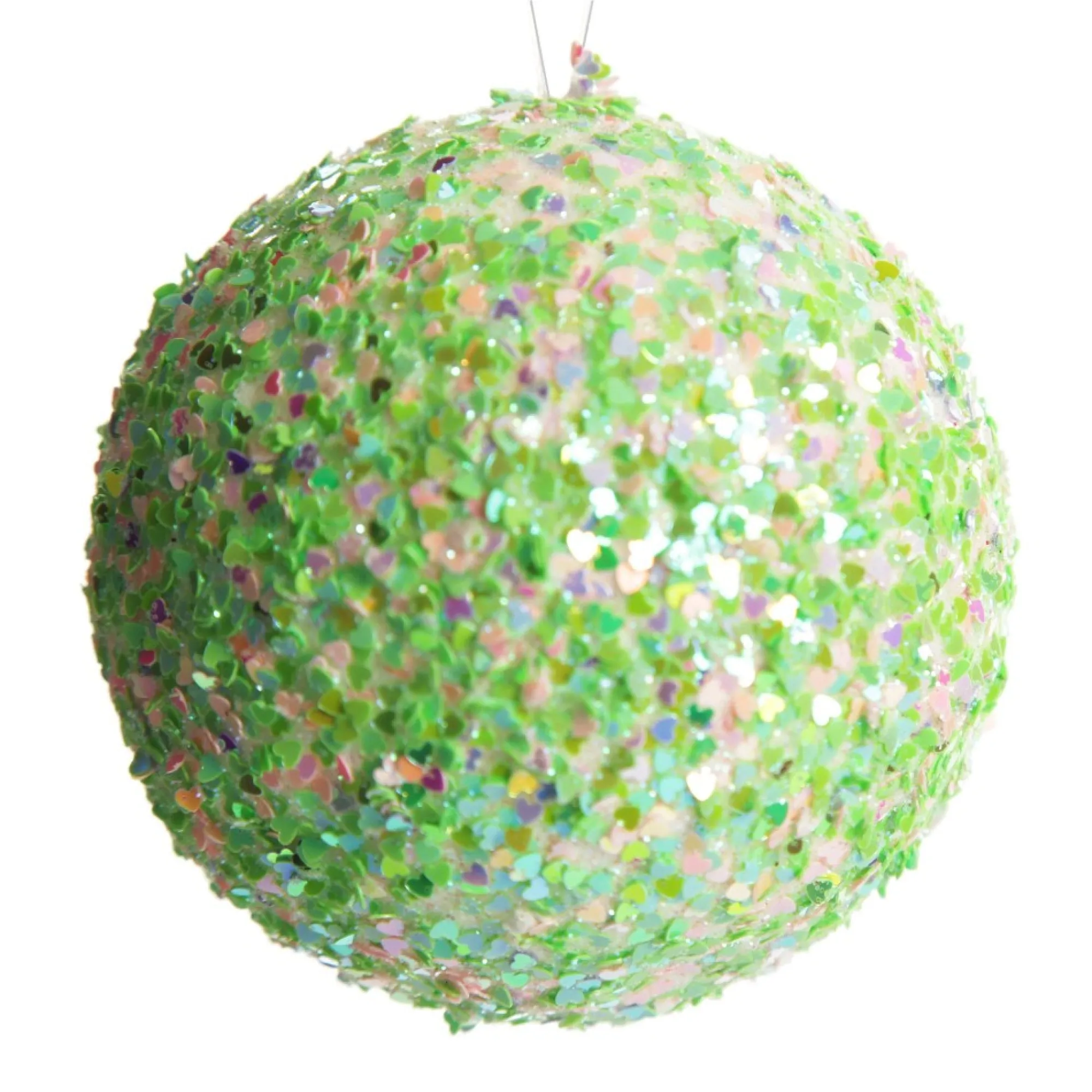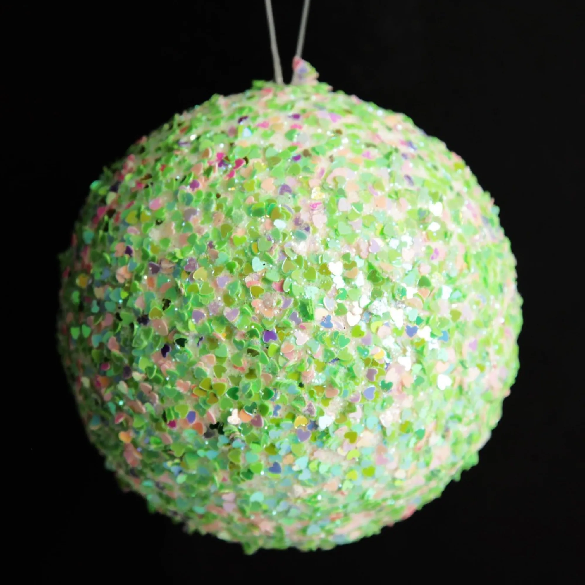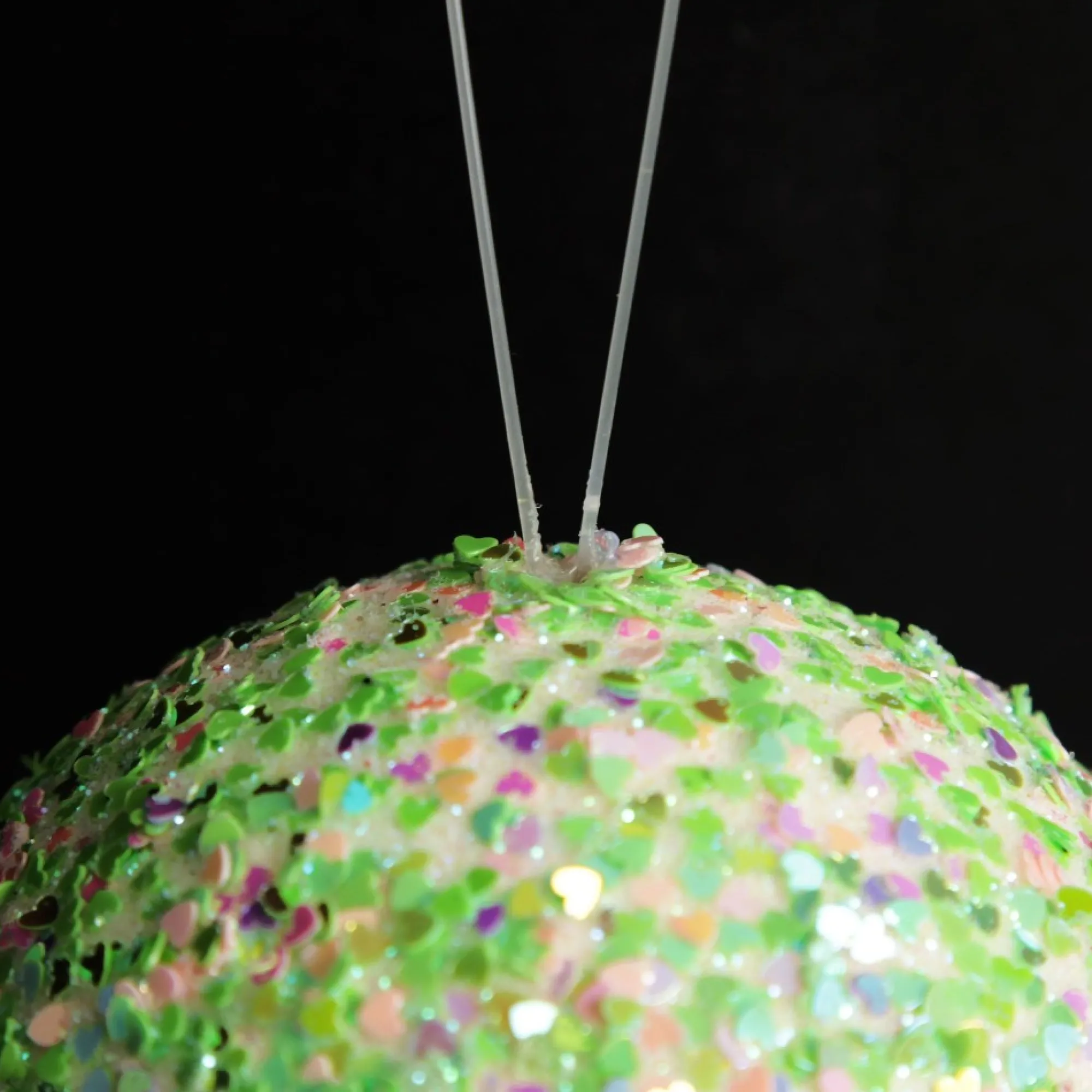 This Lightweight Bauble Features A Stunning Mixture Of Mint Green And Iridescent Sequins Forming A Textured Finish Which Reflects Light In Every Direction. A Clear String Is Attached On Top For Seamless Placement On Your Christmas Tree When Decorating.