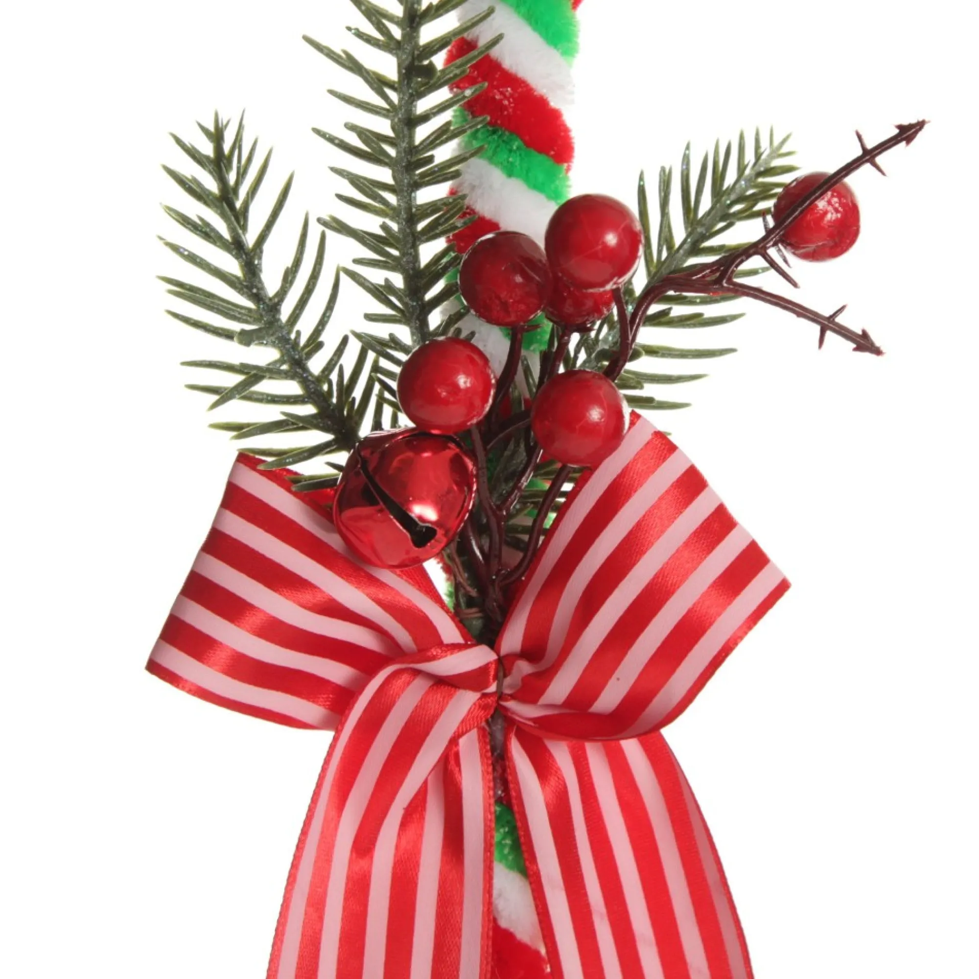 Large Chenille Stick Christmas Candy Cane with Pine and Berries – Set of 2 Outlet