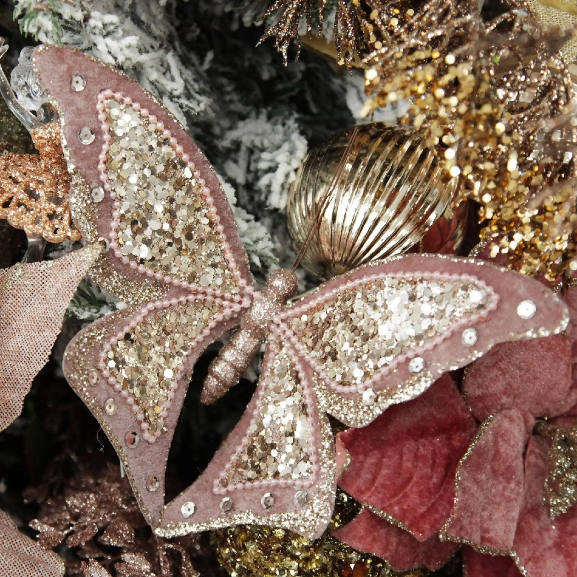 Create A Unique And Sparkling Display With This Large Pink With Gold Glitter Butterfly Clip. Crafted With Lightweight Materials, This Butterfly Features Gorgeous Pink Velvet Wings Embellished With Beaded Trim, Sequin Details And Glitter On The Tips. Such An Elegant And Sparkling Embellishment For Your Christmas Tree. Secure To Other Items Using The Silver Clip Attached To The Back. Decorative Clips Can Be Used For A Wide Range Of Purposes. Use It To Add Exciting Embellishments To Your Christmas Tree, Garlands, Wreaths And More. It Can Even Be Used As A Unique Present Topper When Gift Wrapping Or As An Embellishment For Table Place Settings At Your Christmas Day Feasts. This Gorgeous Pink Glitter Butterfly Is Perfect For A Boho Glam Or Sugar Plum Christmas Decor Theme. Pair With Neutral Tones, Pale Pinks, Champagne Decorations, And Wooden Elements To Create A Stunning And Stylish Display.