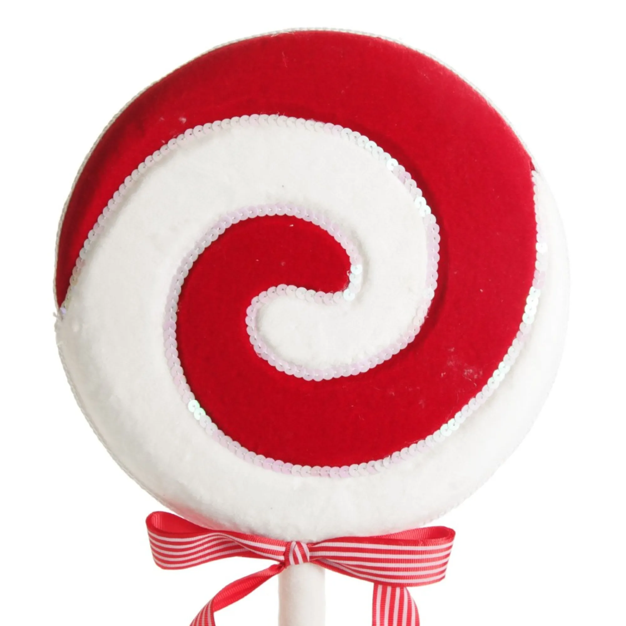 Sweeten Up Your Festive Displays With Our Large Red And White Velvet Lollipop Christmas Pick.
