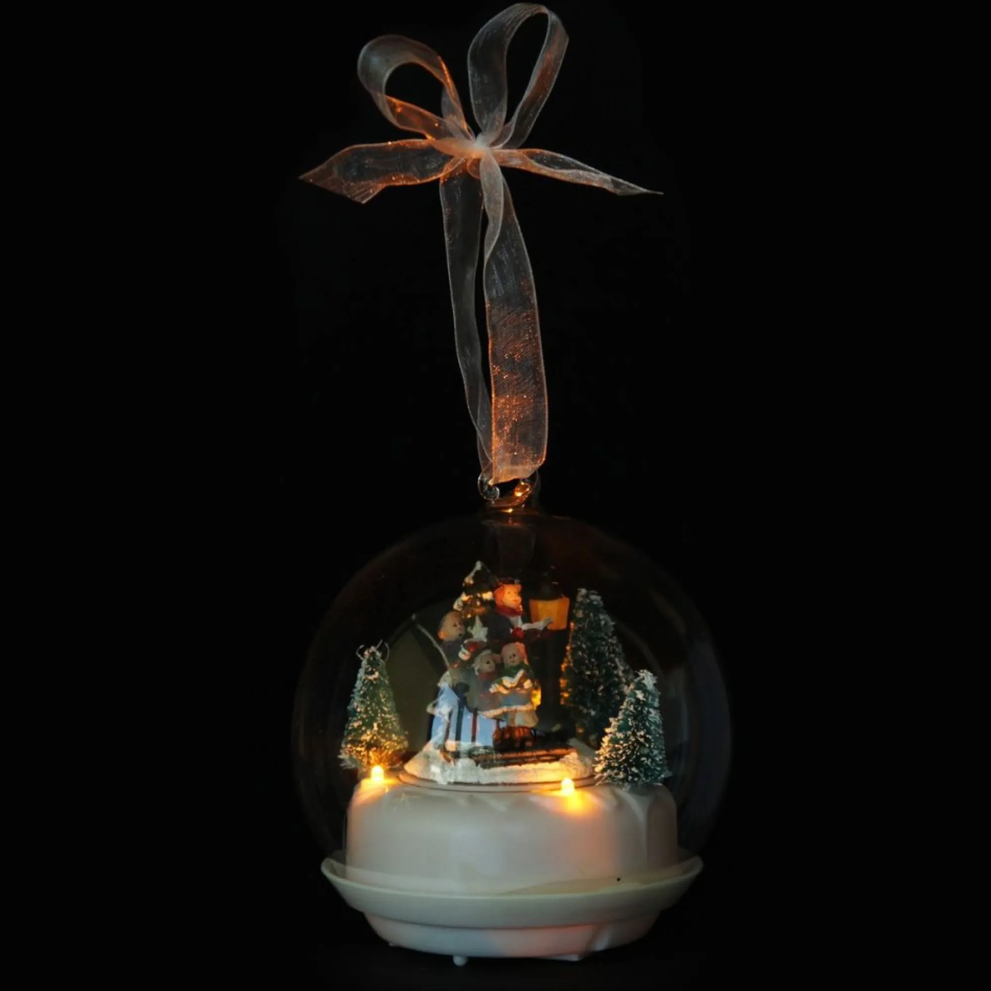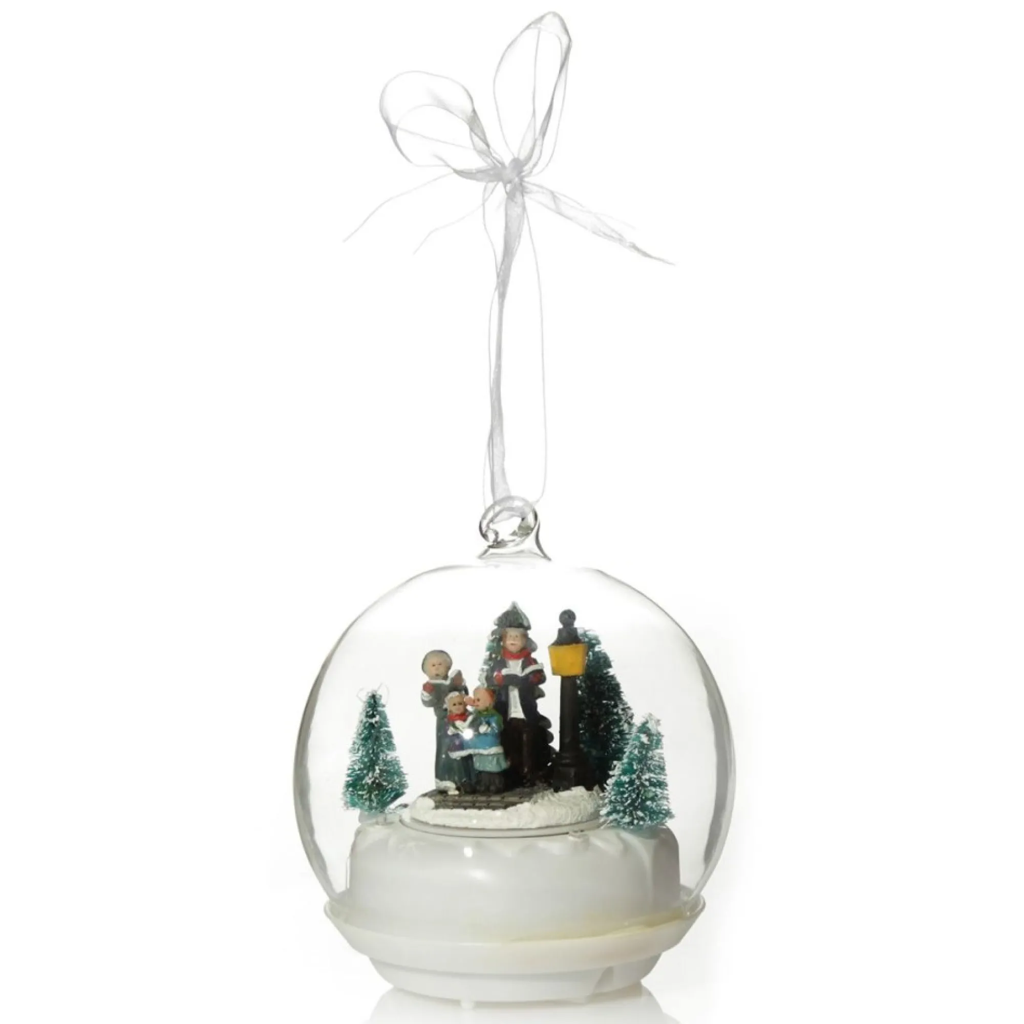 Light Up Your Tree With This Glass Bauble Featuring A Christmas Carolers Scene Complete With Snow-Topped Trees.