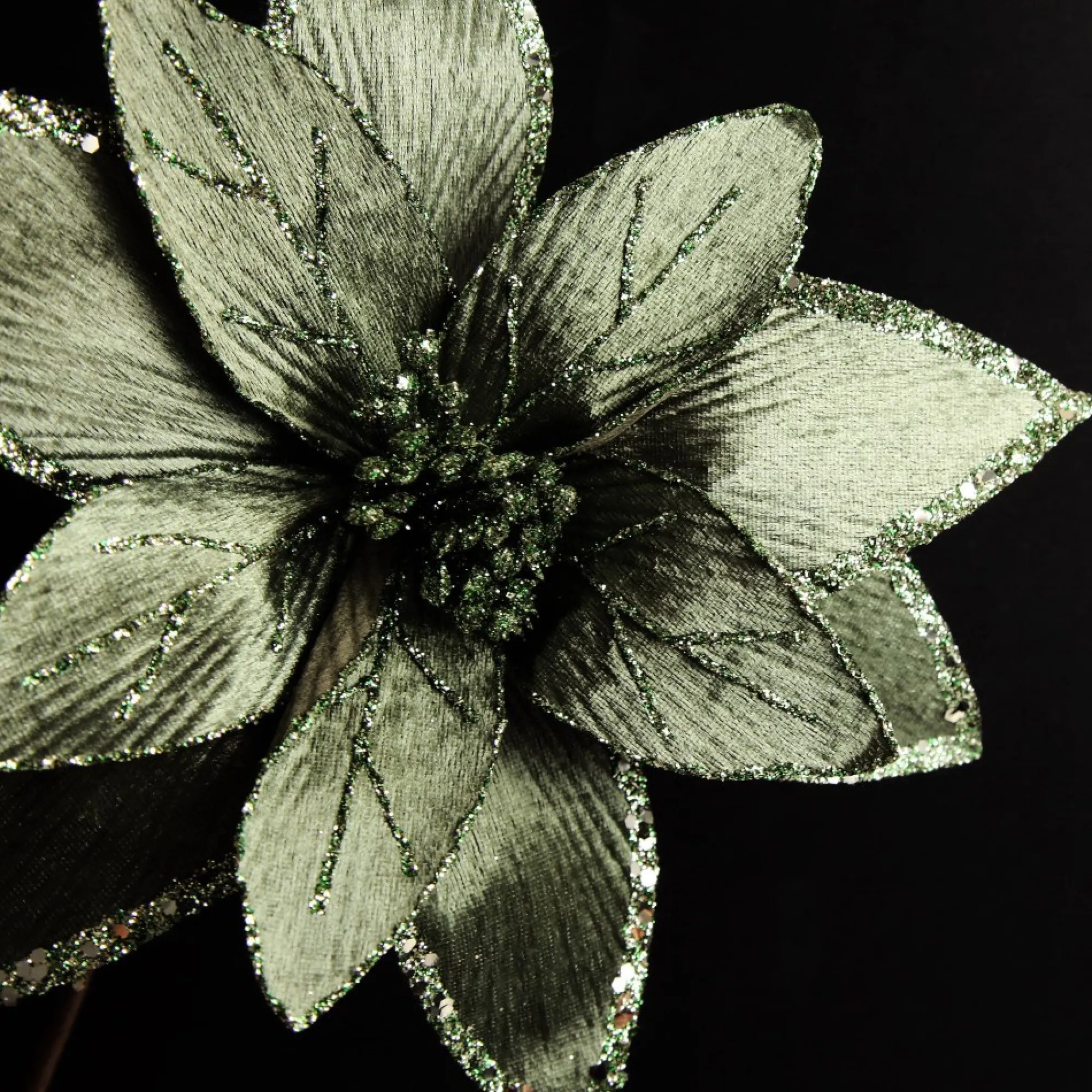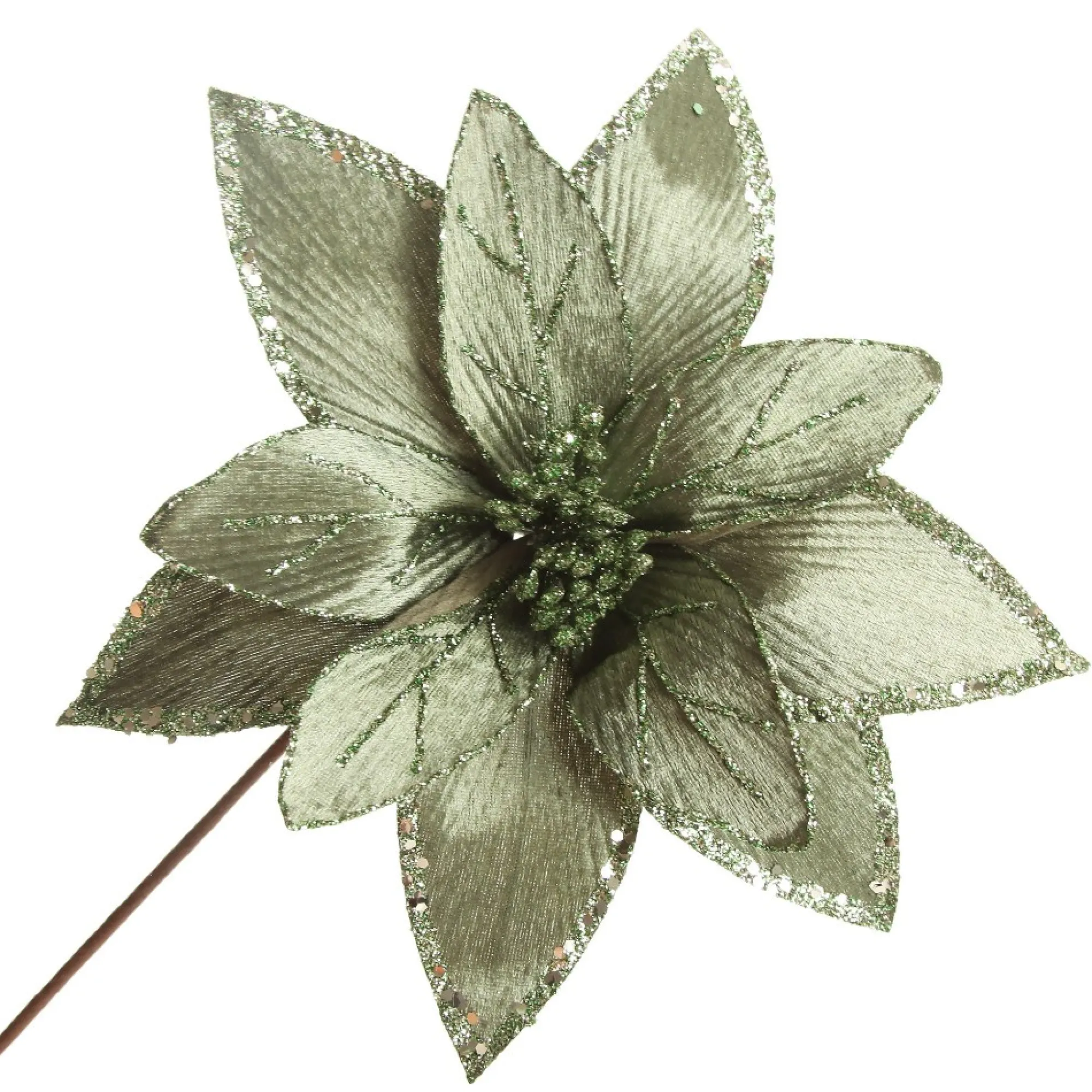 The Perfect Way To Create A Nostalgic And Sophisticated Christmas Look, This Stem Is Sure To Add A Touch Of Rustic Charm To Your Festive Decor. This Lush Sage Poinsettia Flower Stem With Sequin Trim Is Perfect For Anyone Who Loves Decorating And Is Looking For Fresh Ideas And Products To Celebrate The Festive Season In Style. Order Yours Today, Shipped From Australia By The Christmas Cart.