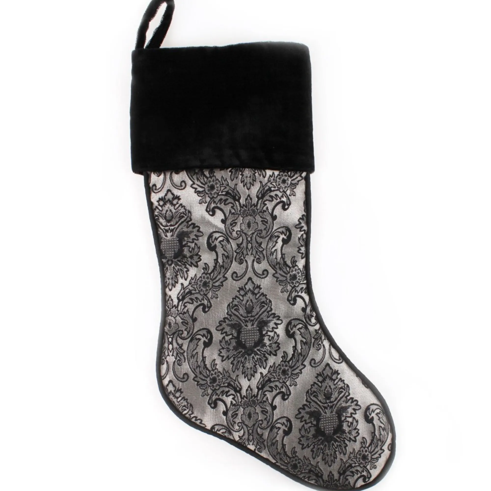Crafted From High Quality Materials, This Stocking Features A Stunning Black And Silver Damask Jacquard Pattern And Black Cuff. This Stocking Is Only Sold Unpersonalised – Perfect For A Decorative Element In Your Festive Displays.
