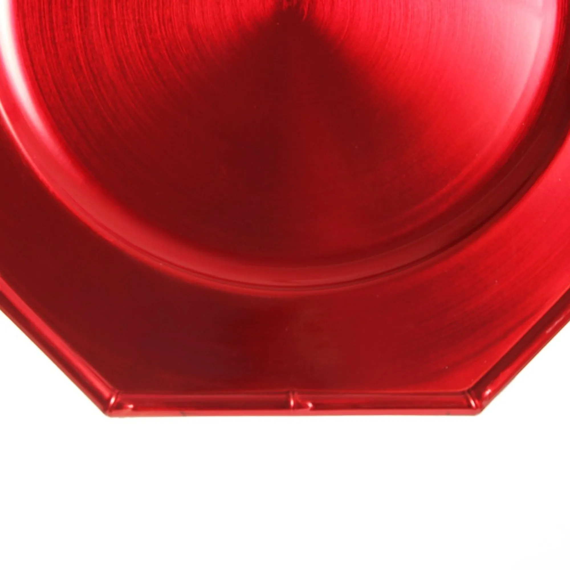 Enhance Your Festive Table Display With This Stunning Metallic Red Charger Plate With Bamboo Pattern Trim. Made From Lightweight Acrylic Material With A Glossy Red Finish And Featuring Unique Bamboo Trim Detailing On The Outer Edge. A Simple Yet Effective Way To Create An Exciting Table Display. Charger Plates Are A Simple And Effective Way To Create An Enhanced And Decorative Table Display. Use This Charger Plate As A Decorative Base Setting For Your Christmas Day Feast. Place Regular Dinnerware On Top To Create A Lush, Layered, And Formal Display. They Also Help To Keep Your Chosen Colour Palette Infused Throughout Every Aspect Of Your Decor. This Red Charger Plate Is Perfect For Any Traditional Christmas Decor Theme.