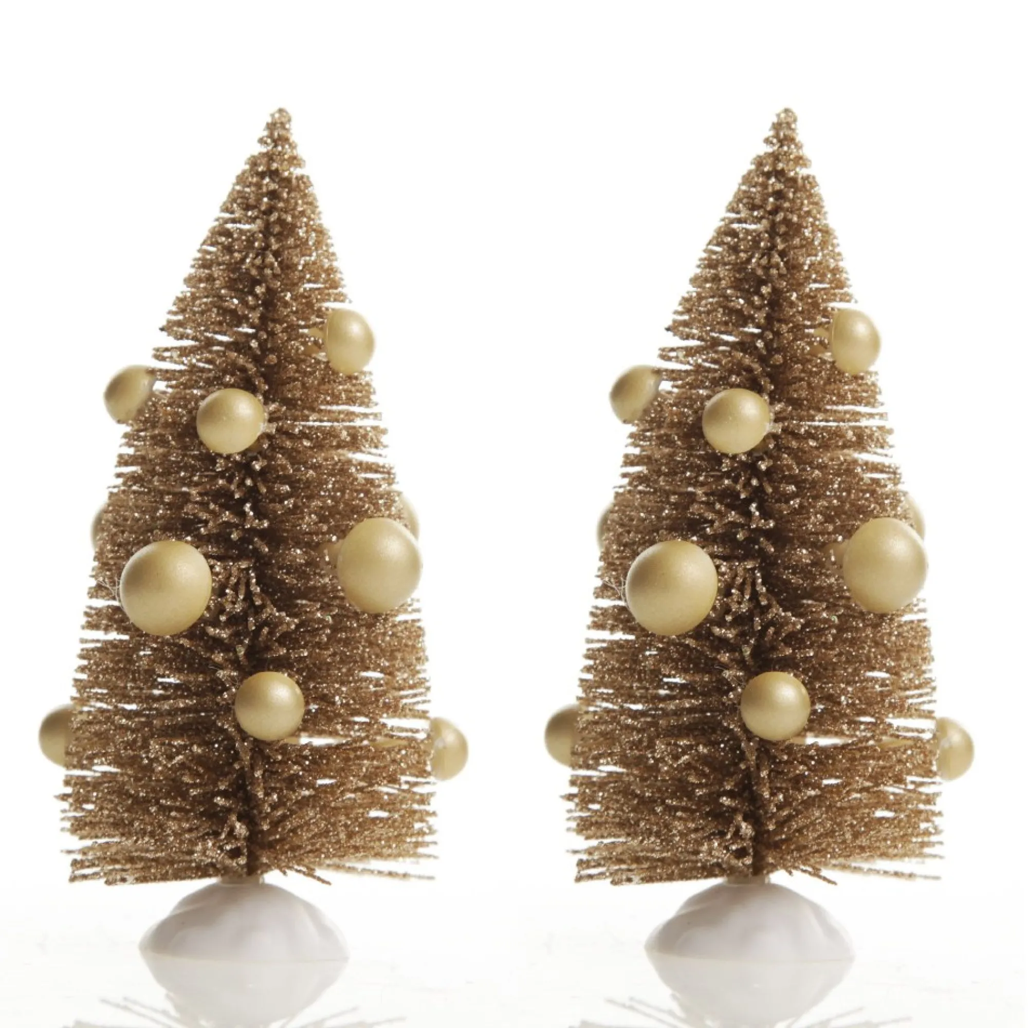 This Mini Antique Goldbottle Brush Tree With Pearls Will Make The Perfect Addition To Your Festive Christmas Decor. This Set Includes Two Trees Crafted With Flexible Bottlebrush Wire, A White Plastic Base And A Vintage Pearl Embellishments. Use These Trees As Part Of A Tabletop Vignette Or Centrepiece. Decorate Your Dining Table, Coffee Table, Mantel And More! Tabletop Trees Are Great For Creating Small Festive Scenes Paired With Figurines, Ornaments Seed Lights And More! Get Crafty This Christmas Can Create Some Delightful Displays To Sprinkle Christmas Cheer Right Throughout Your Home.
