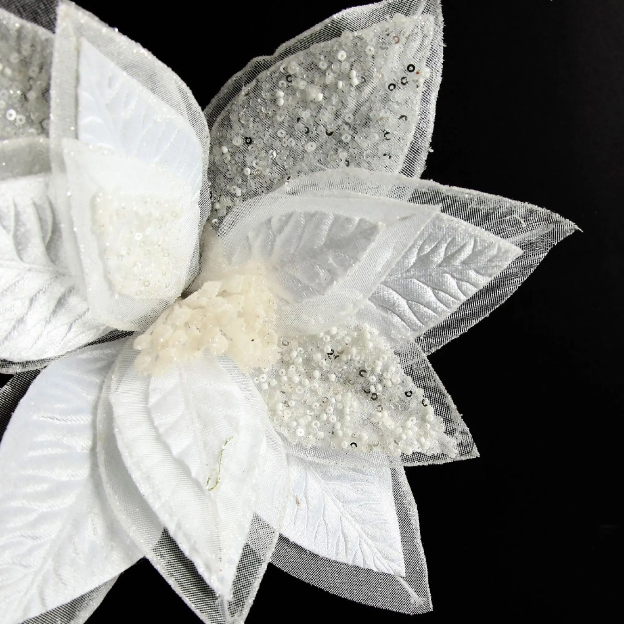 Step Into A Winter Wonderland When You Decorate Your Home With Our Mixed Petal White Poinsettia Flower Stem. Delicately Curated From Cotton, Linen And Calico Materials, Featuring A Lush-Layered Design And Finished With Unique Patterns And Sparkly Sequins. This Product Is Designed To Reflect The Shimmering Beauty Of Winter So You Can Create A Mesmerising Ambience That Elevates Your Celebrations To New Heights Of Elegance.