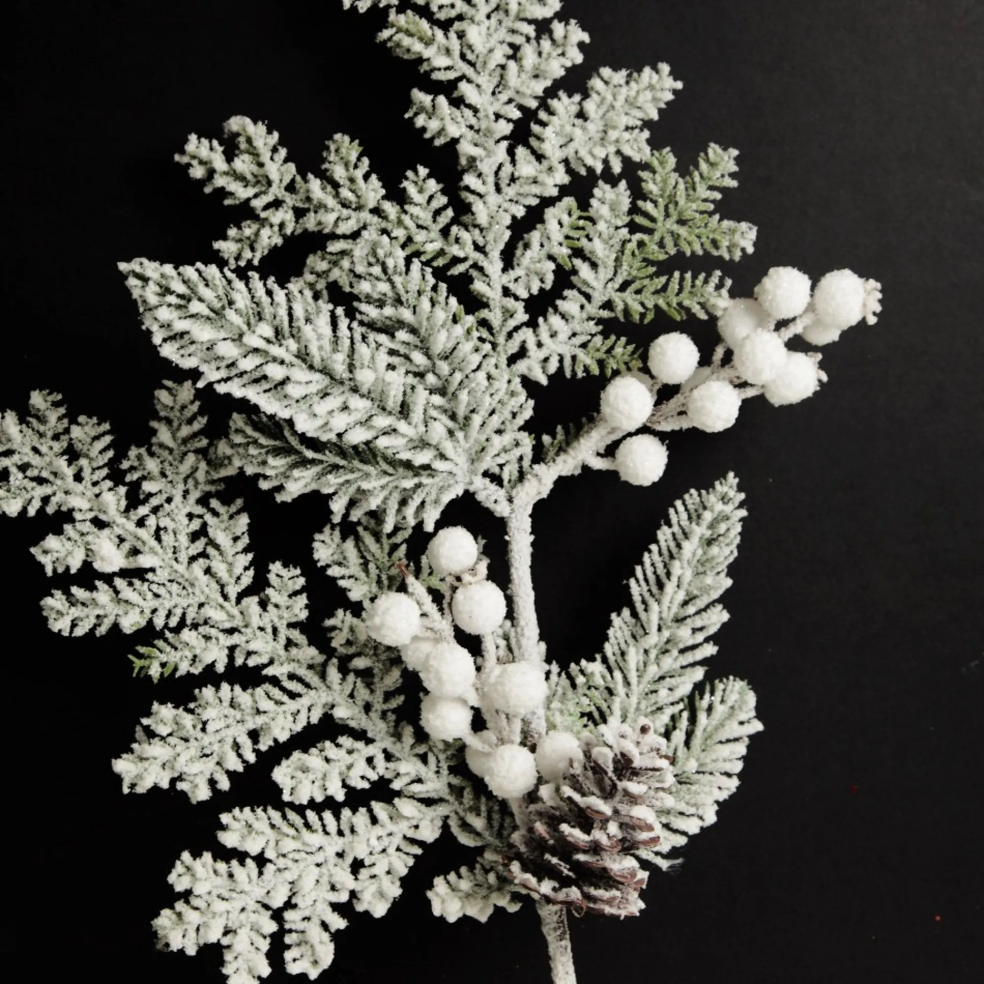 Featuring A Collection Of Assorted Green Pine Branches, White Berries, And Pinecones. The Spray Is Covered In A Dusting Of White Faux Snow To Create A Wintery Display. The Flexible Stem Allows You To Easily Place And Arrange The Spray Where Needed. Place In A Large Vase With Other Florals And Foliage, Affix To Garlands, Bannisters, Wreaths And More.