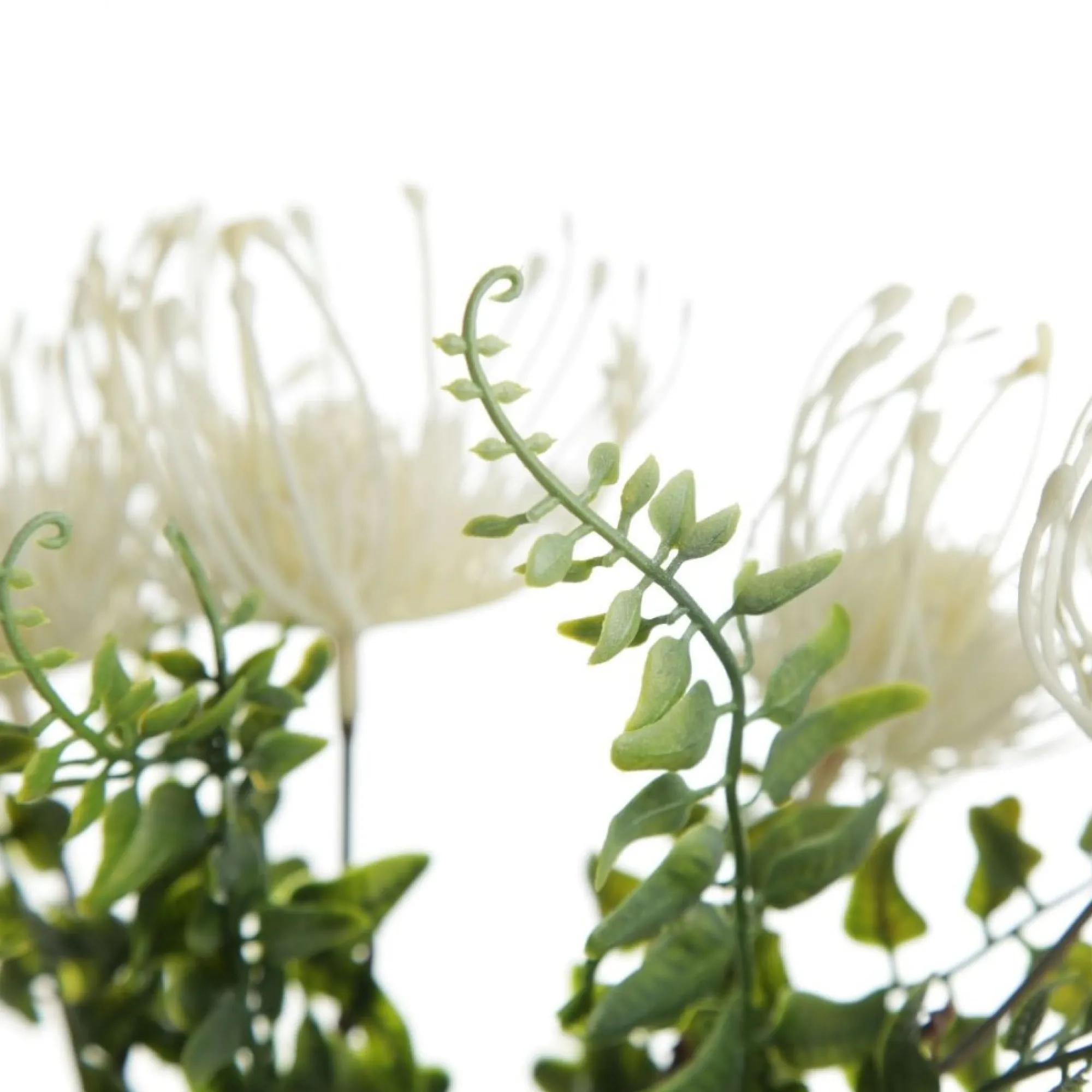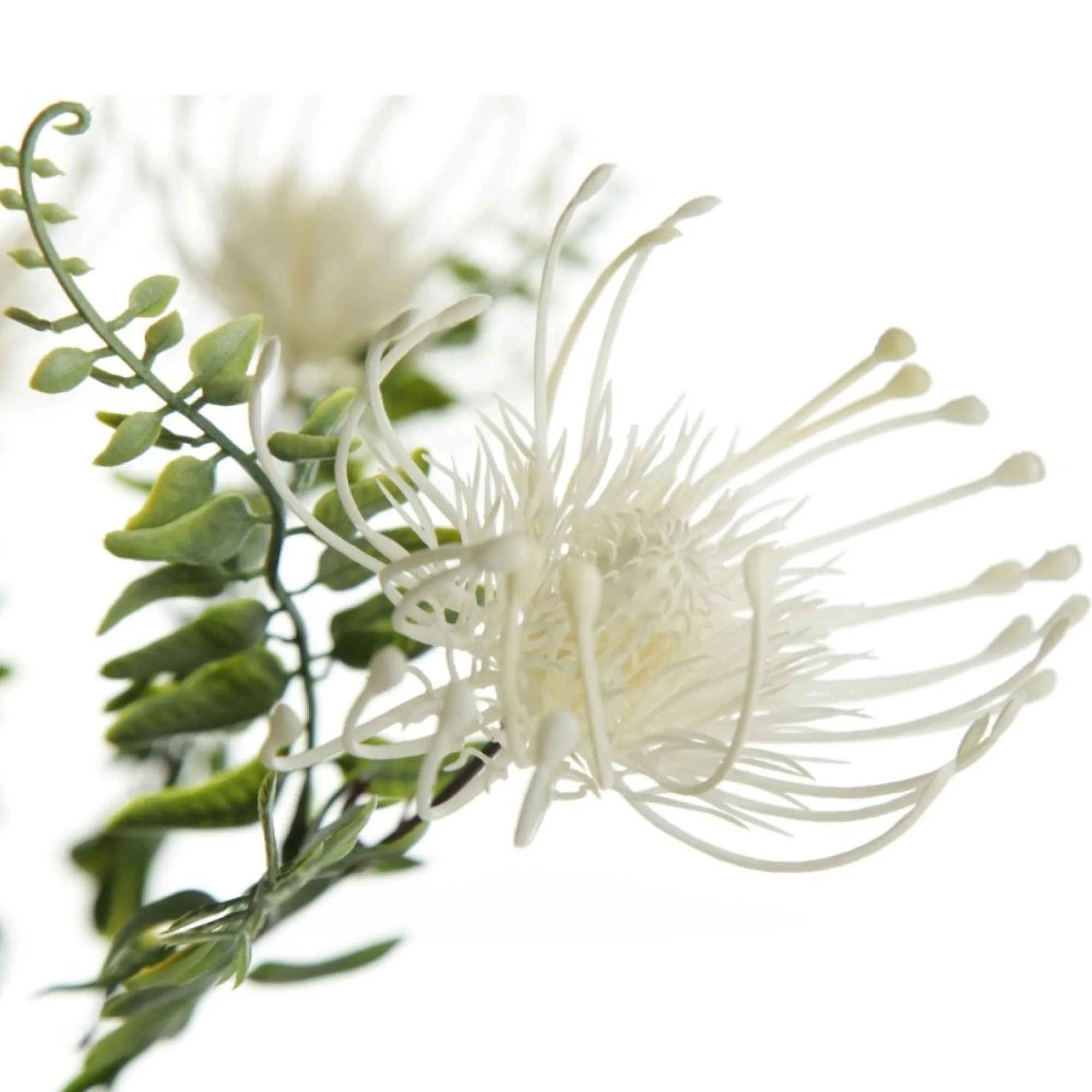 Bring Delightful Australian Flora Into Your Home With This Native Cream Pincushion Protea Flower Spray. Made From A Flexible, Lightweight Material, This Spray Features 4 Bright Flower Buds With Detailed Foliage In Shades Of Green And Brown.