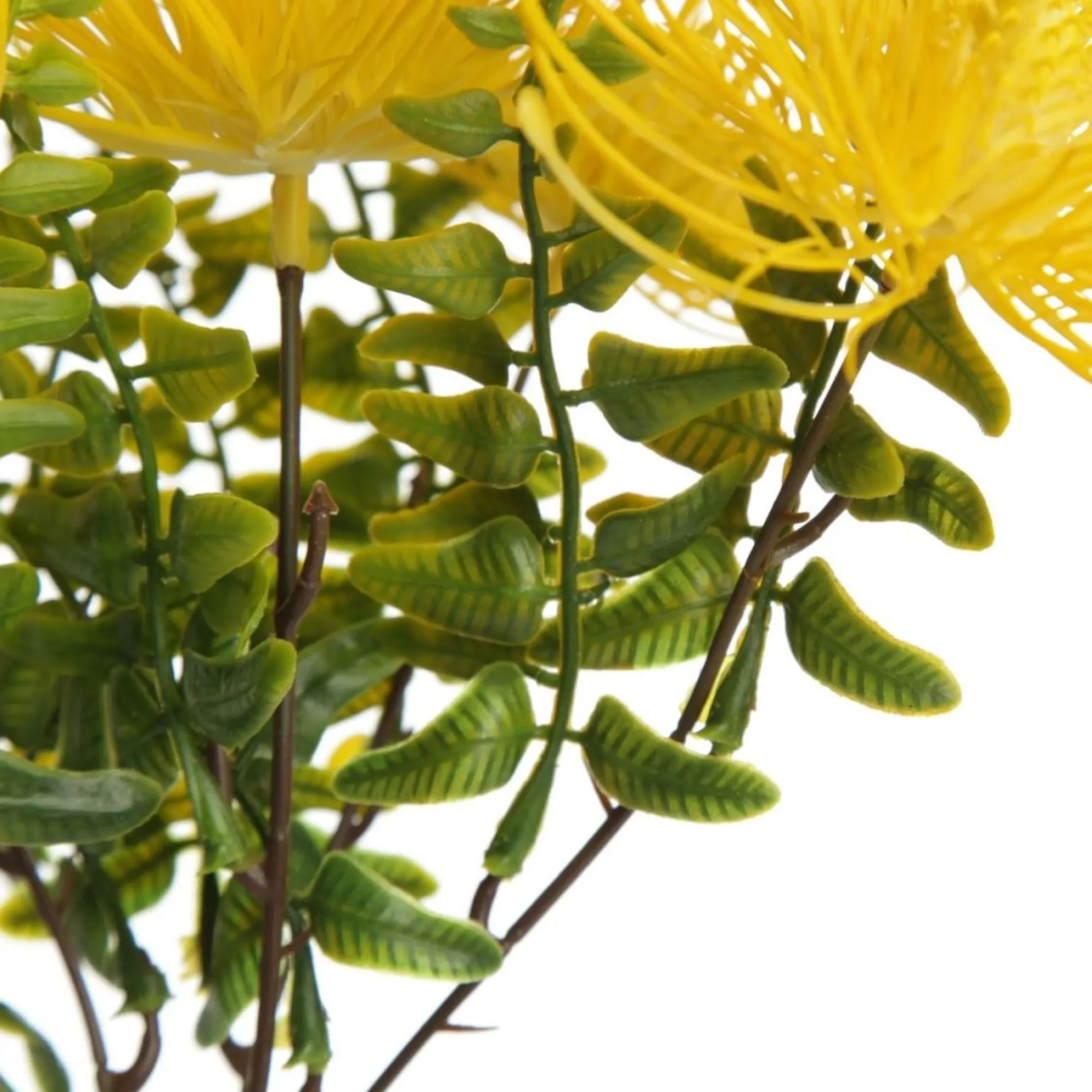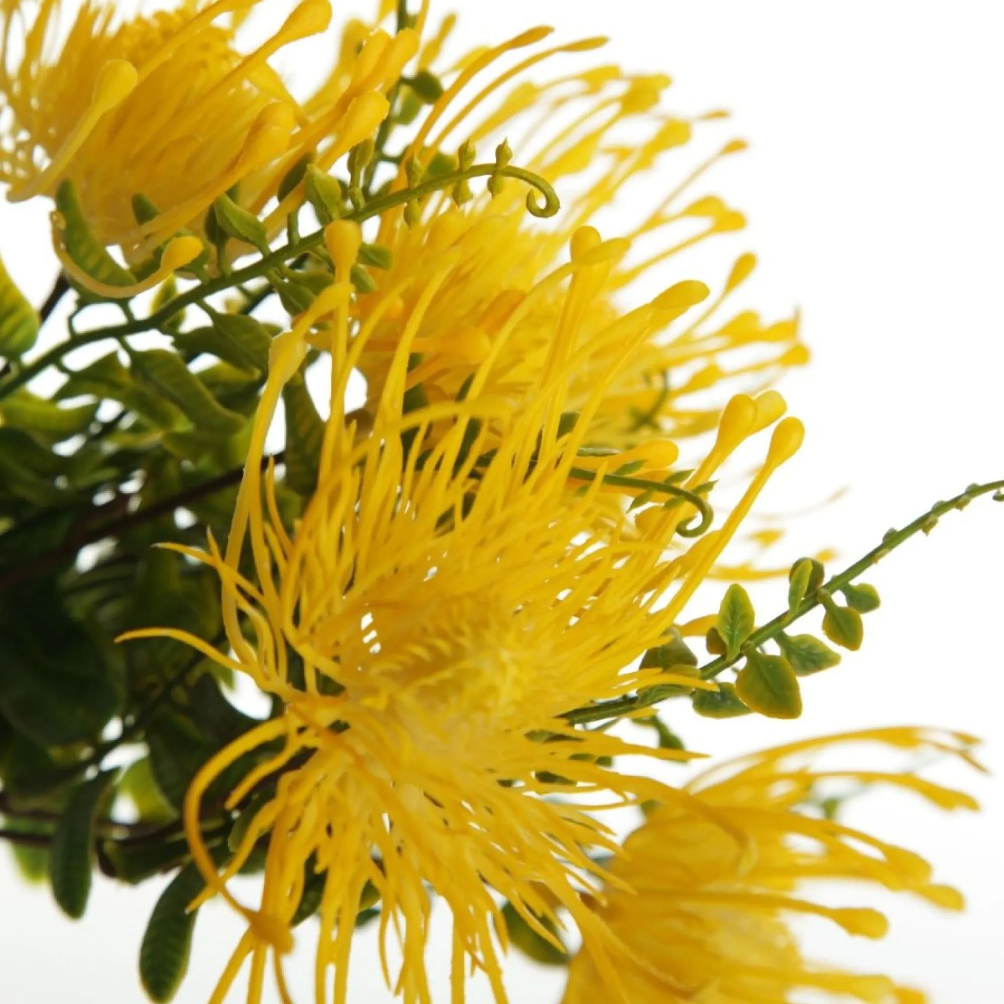 Bring Delightful Australian Flora Into Your Home With This Native Yellow Pincushion Protea Flower Spray. Made From A Flexible, Lightweight Material, This Spray Features 4 Bright Flower Buds With Detailed Foliage In Shades Of Green And Brown. Use To Add Pops Of Colour To Your Floral Arrangements Or Add To Your Christmas Wreath To Create A Unique Design. Can Also Be Used To Create A Custom Table Centepiece Or For Any Crafting Project. Perfect For Australiana Themed Christmas Decor When Paired With Our Other Native Australiana Florals In An Array Of Colours. Create Authentic, Native Floral Arrangements With This Native Yellow Pinecushion Protea Flower Spray.