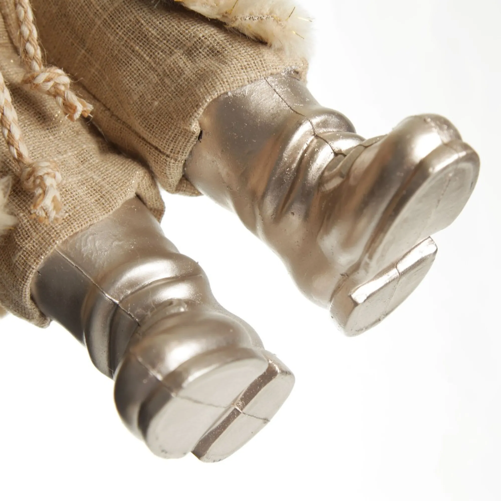 Enhance Your Festive Displays With This Stunning Natural Seaside Standing Santa Christmas Ornament. This Standing Santa Ornament Features A Natural Jute Suit With A Silver Jacket And Pearl Trim. The Figurine Holds A Small Tree And Hanging Starfish For A Touch Of The Seaside.