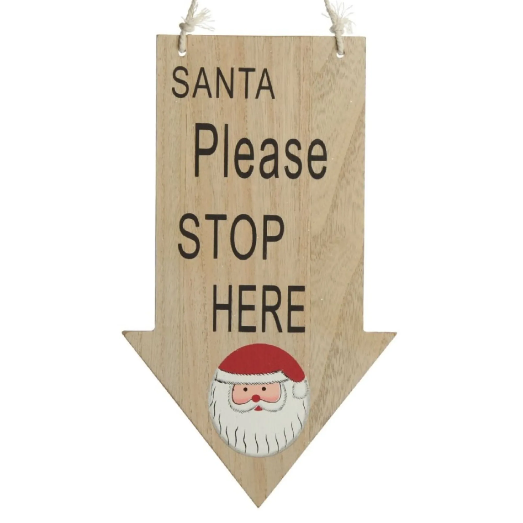 Natural Wood Santa Please Stop Here Arrow Sign – Santa Face Fashion
