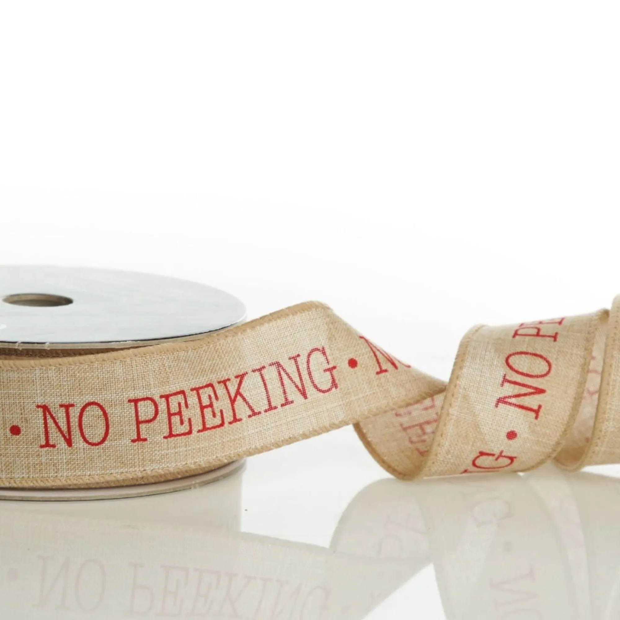 Made From Natural Burlap Ribbon With A Wired Edge, This Ribbon Features The Words ‘No Peeking’, As A Reminder To Those Who Can’T Resist Peeking At Their Presents Before Christmas Day. The Wired Edge Makes It Perfect For Creating Beautiful Bows And Bellows That Hold Their Shape.