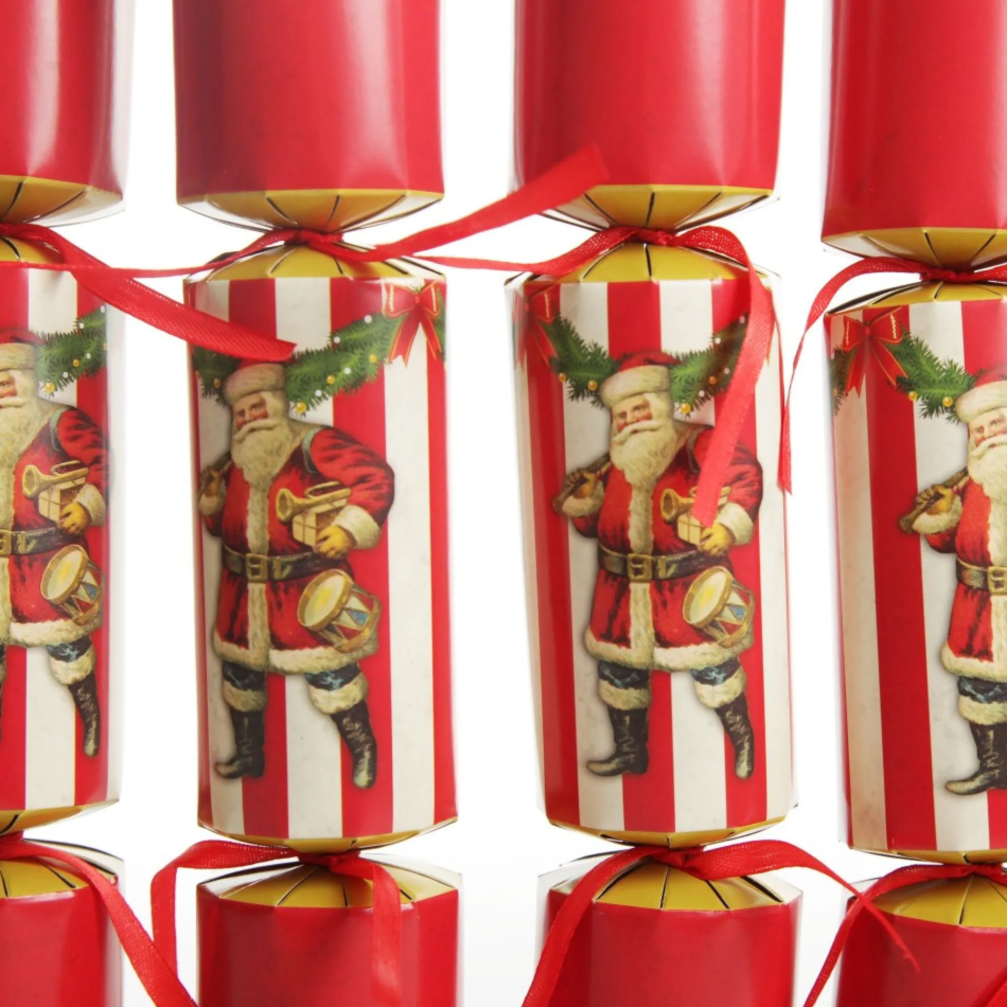 Keep Festive Traditions Alive And Create A Darling Display With These Nostalgic Santa Christmas Bon Bons. The Set Includes 6 Deluxe Bon Bons Featuring A Vibrant Red And White Stripe Design With Vintage Santa. Each Bon Bon Contains A Novelty Gift To Surprise Your Guests As They Crack It Open.