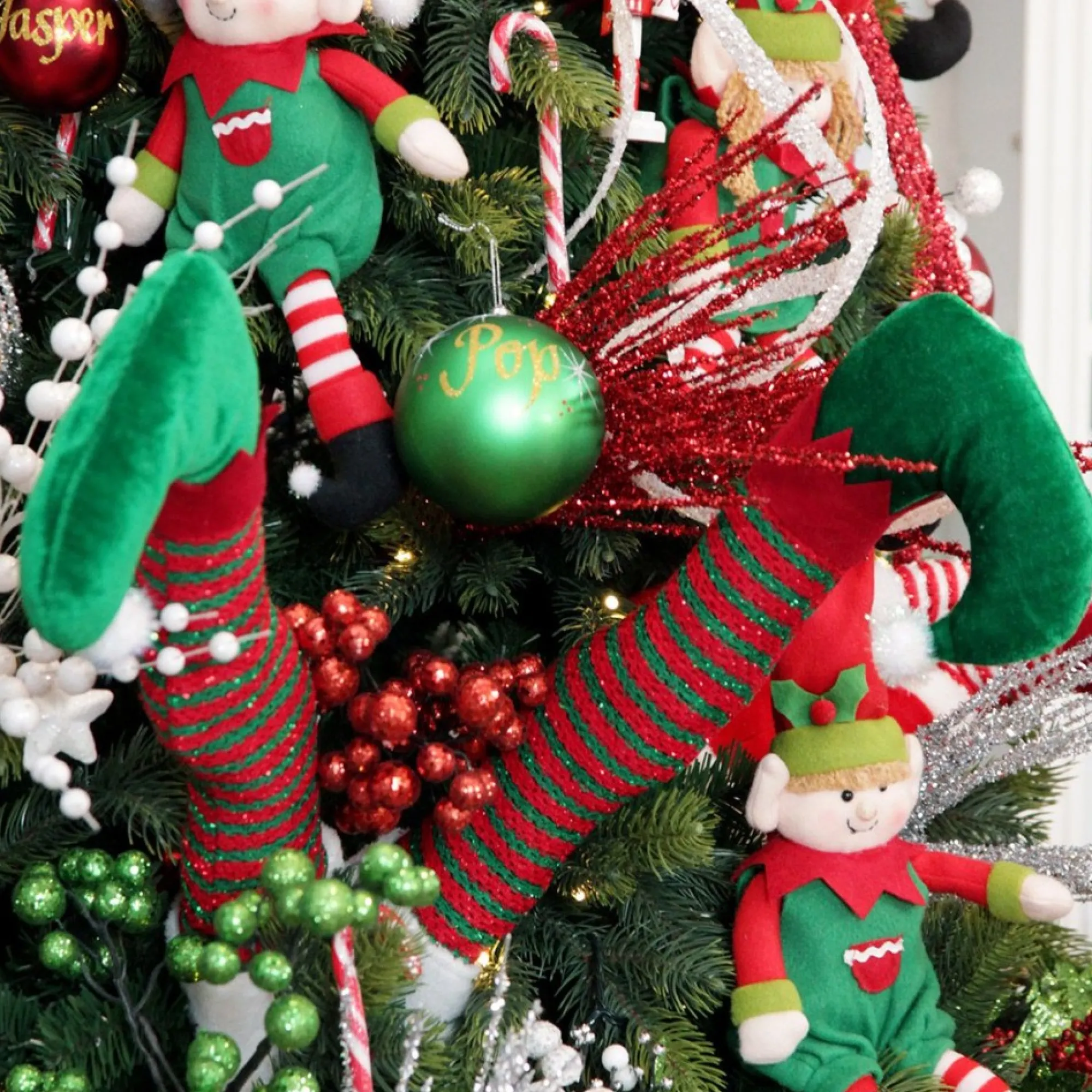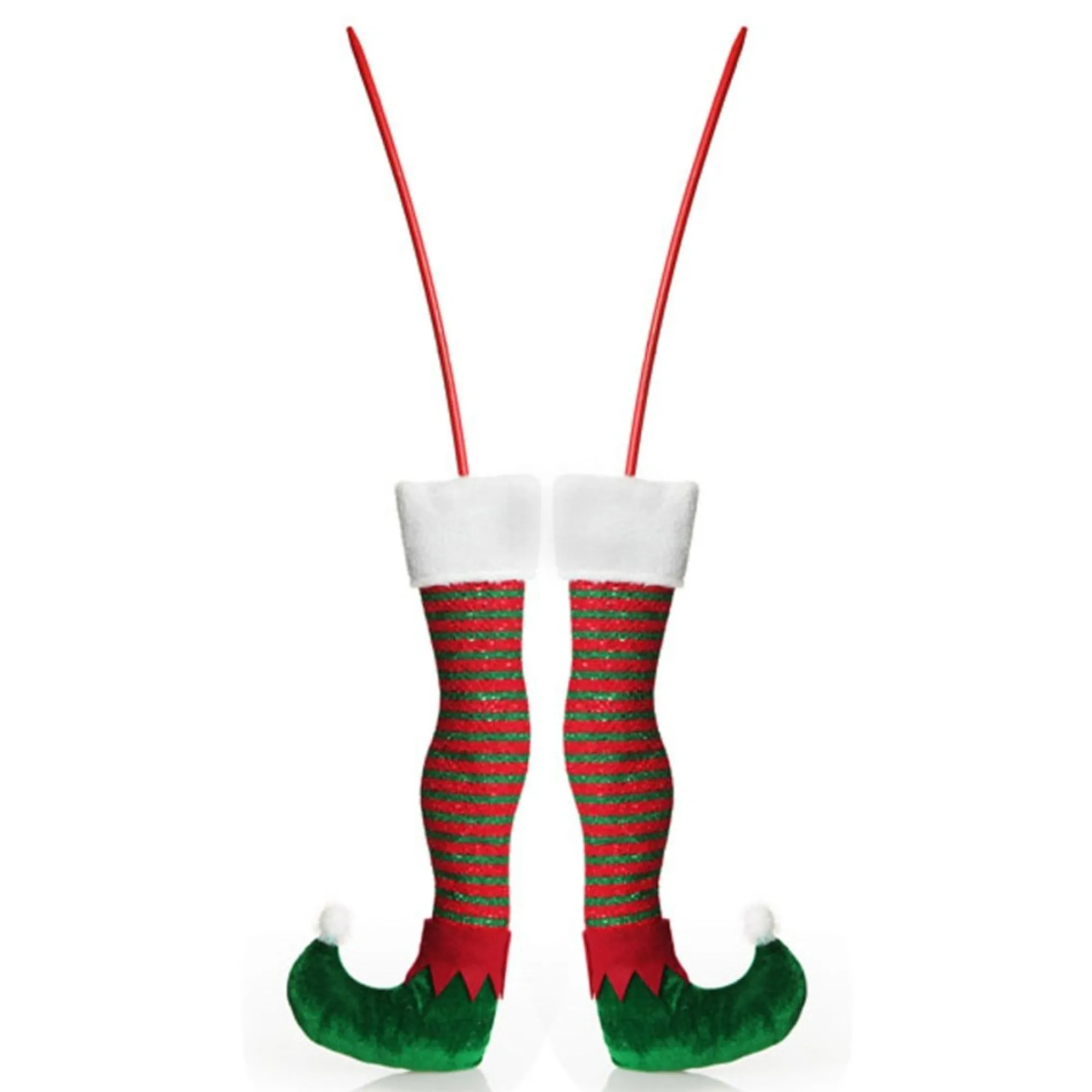 One Pair Of Elf Legs! 90Cm Long And The Perfect Addition To Your Tree. Featuring Green Elf Shoes And Long Red And Green Striped Socks.