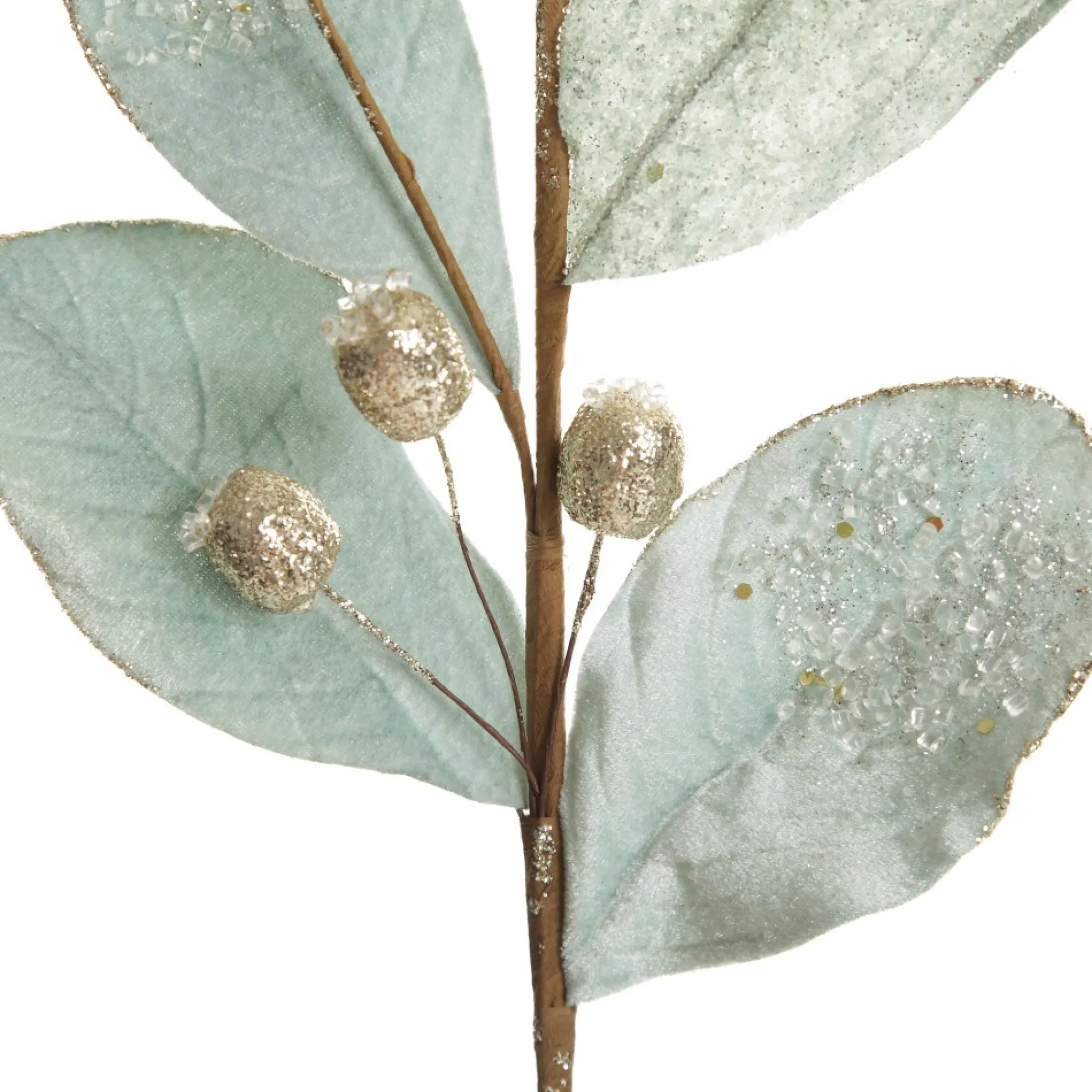 This Unique Pale Blue Mixed Leaf Christmas Spray With Beads Will Enhance Your Festive Floral Arrangements. Featuring A Collection Of Baby Blue Leaves With A Velour Finish And Textured Details.