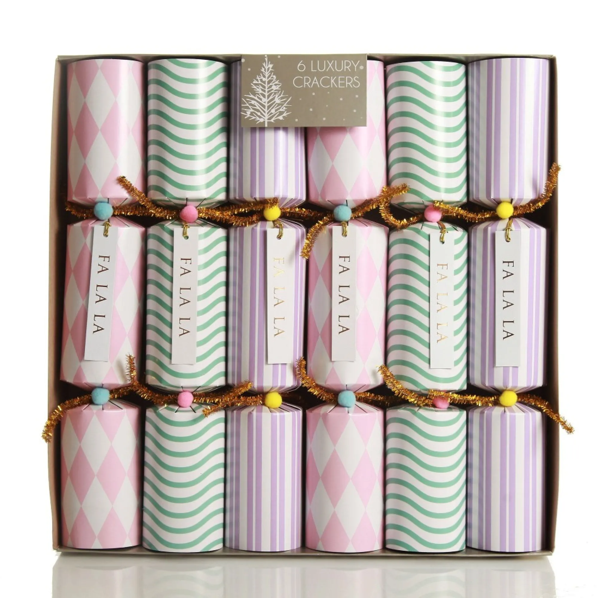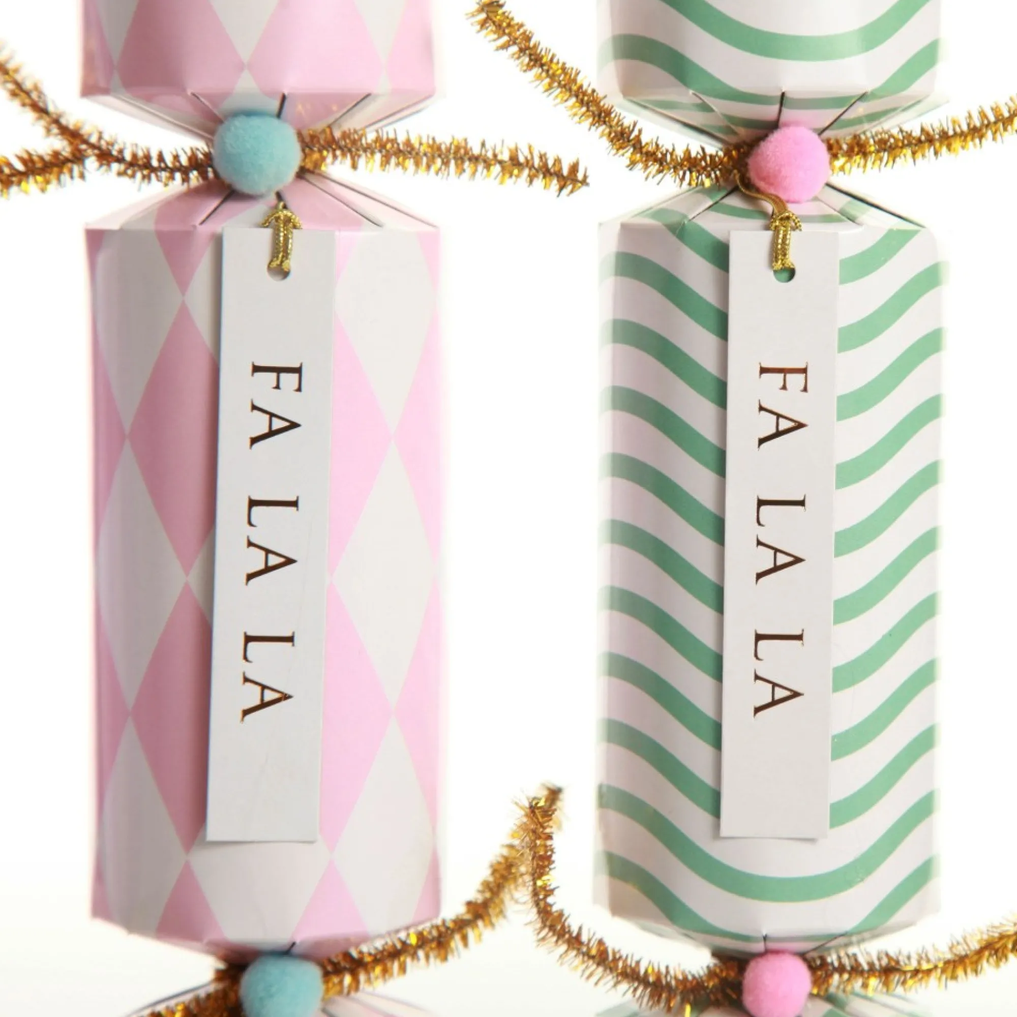 These Unique Pastel Pattern Christmas Bon Bons Will Make The Perfect Addition To An Exciting Festive Table Display. The Set Contains 3 Pastel Colour Designs – Pink Harlequin, Mint Waves, And Purple Stripes – With A Tinsel Pom Pom Embellishment And ‘Fa La La’ Tag. Each Bon Bon Contains A Novelty Gift To Surprise Your Guests As They Crack It Open.