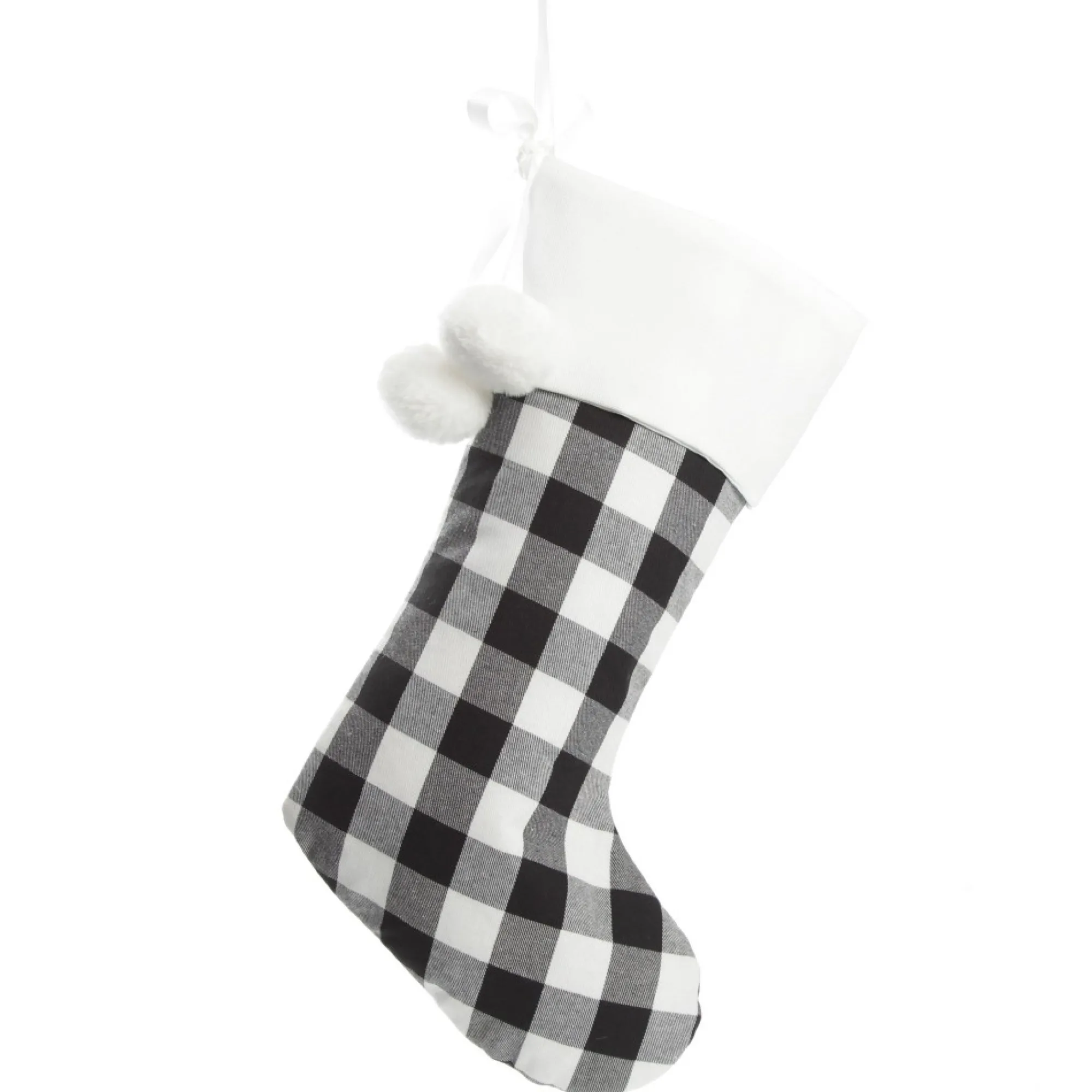 This Stocking Is Crafted From Gorgeous White And Black Buffalo Check Fabric With A Durable White Cuff With Fun White Pom Poms Attached To A Ribbon. The Cuff Can Be Personalised With The Name Of Your Choice. Simply Choose A Text Style And Colour To Create Your Own Unique Christmas Keepsake. Price Includes Personalisation. Custom Stockings Are Thoughtful Gifts For Loved Ones And Are Also The Perfect Way To Adorn Your Home To Create A Cosy, Festive And Personalised Display.