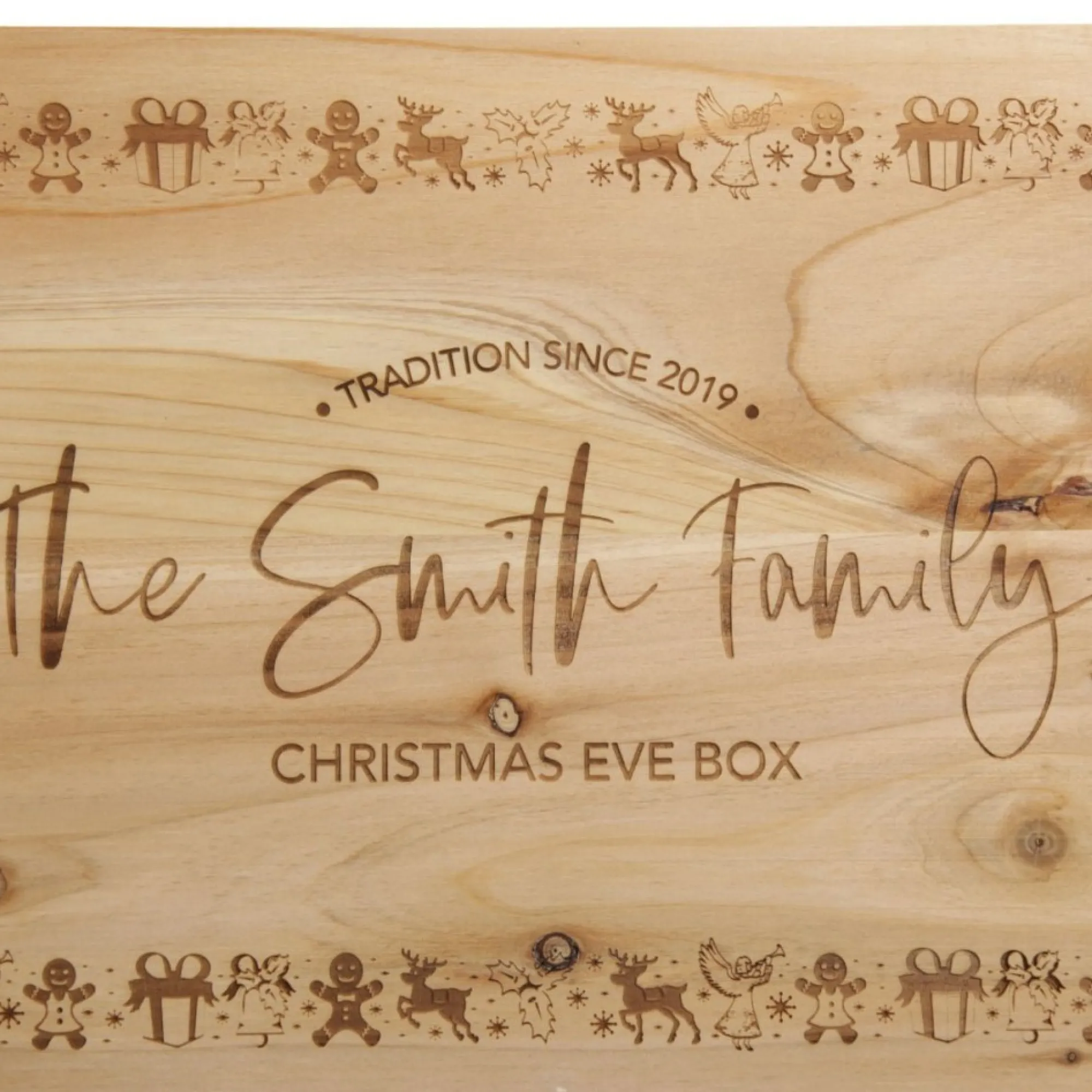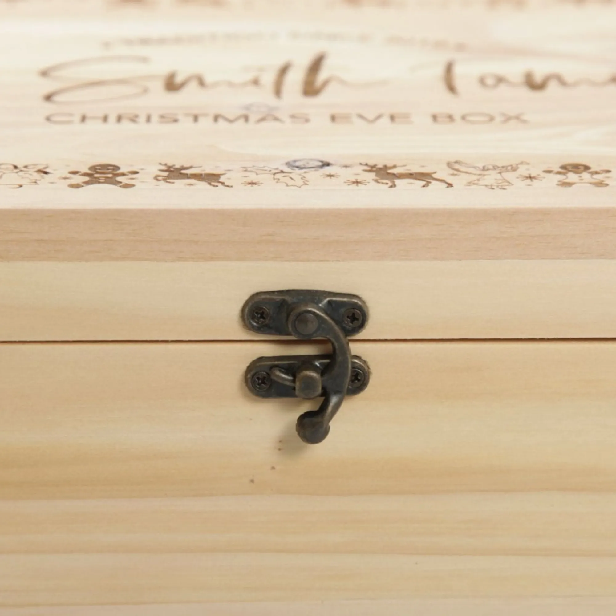 Make Every Night Before Christmas Memorable With This Personalised Wooden Christmas Eve Box, Featuring A Decorative Christmas Parade Pattern. Personalise It With A Name In Cursive And Year Of Your Choice. The Quality Of These Boxes Means They Can Be Enjoyed By Your Family Year After Year.