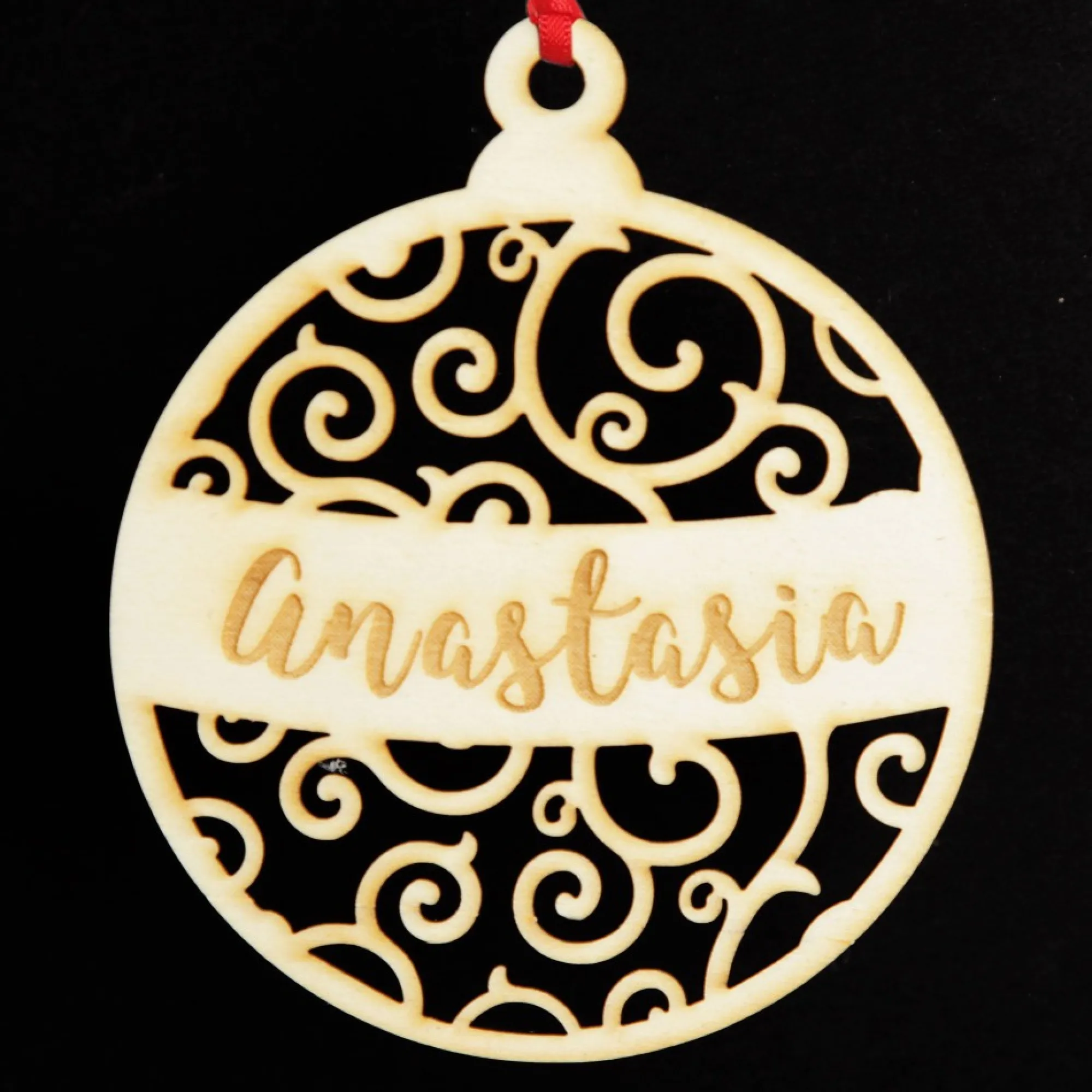Make An Exciting Festive Keepsake For Loved Ones With Our Personalised Etched Bauble Christmas Decoration. This Circular Bauble Ornament Is Crafted From Your Choice Of Plywood Or Mirrored Acrylic And Features Laser Etched Snowflakes And The Name Of Your Choice. Add A Name And Choose A Colour To Create Your Own Unique Ornament. Plywood Available In One Finish. Mirrored Acrylic Available In Silver, Gold, And Rose Gold.
