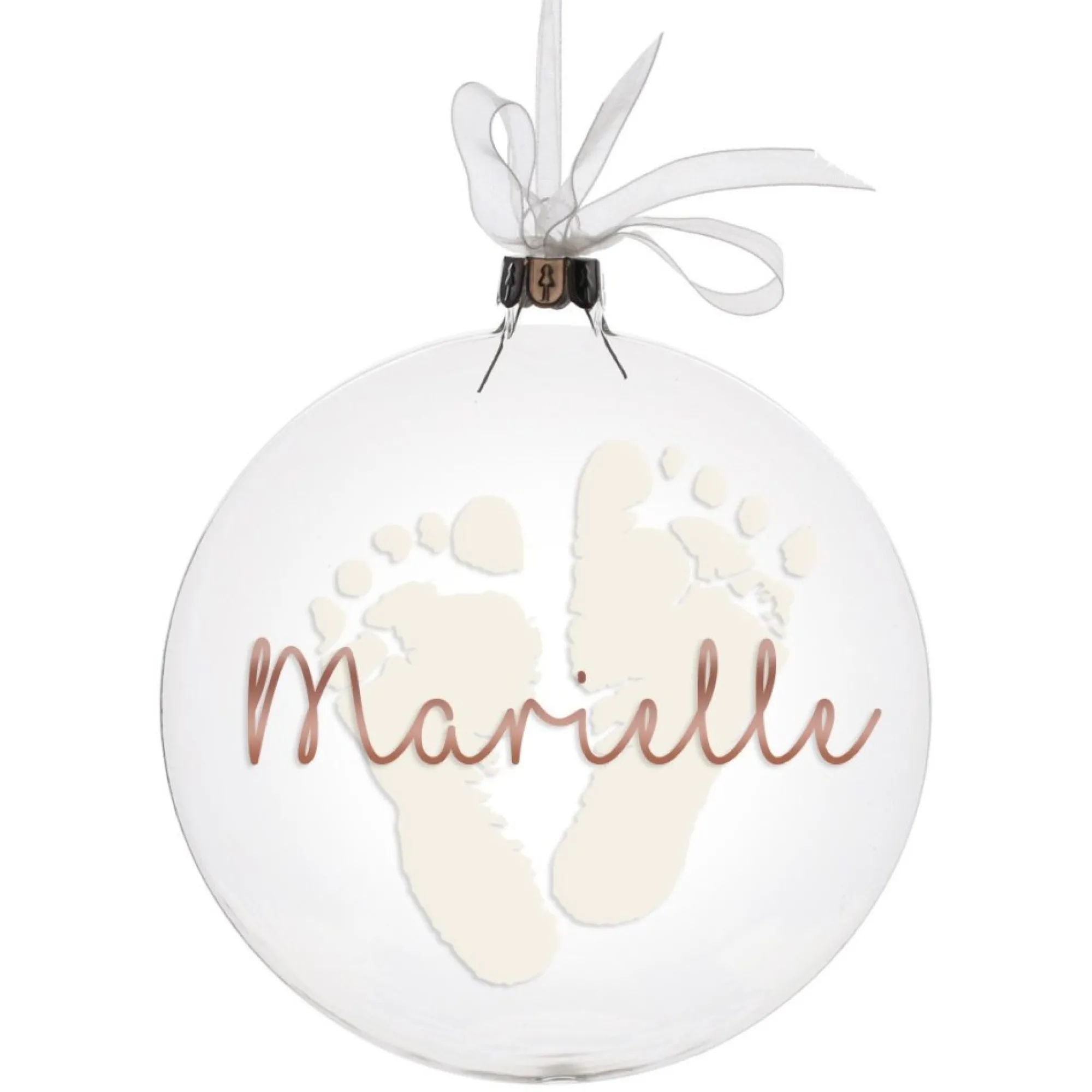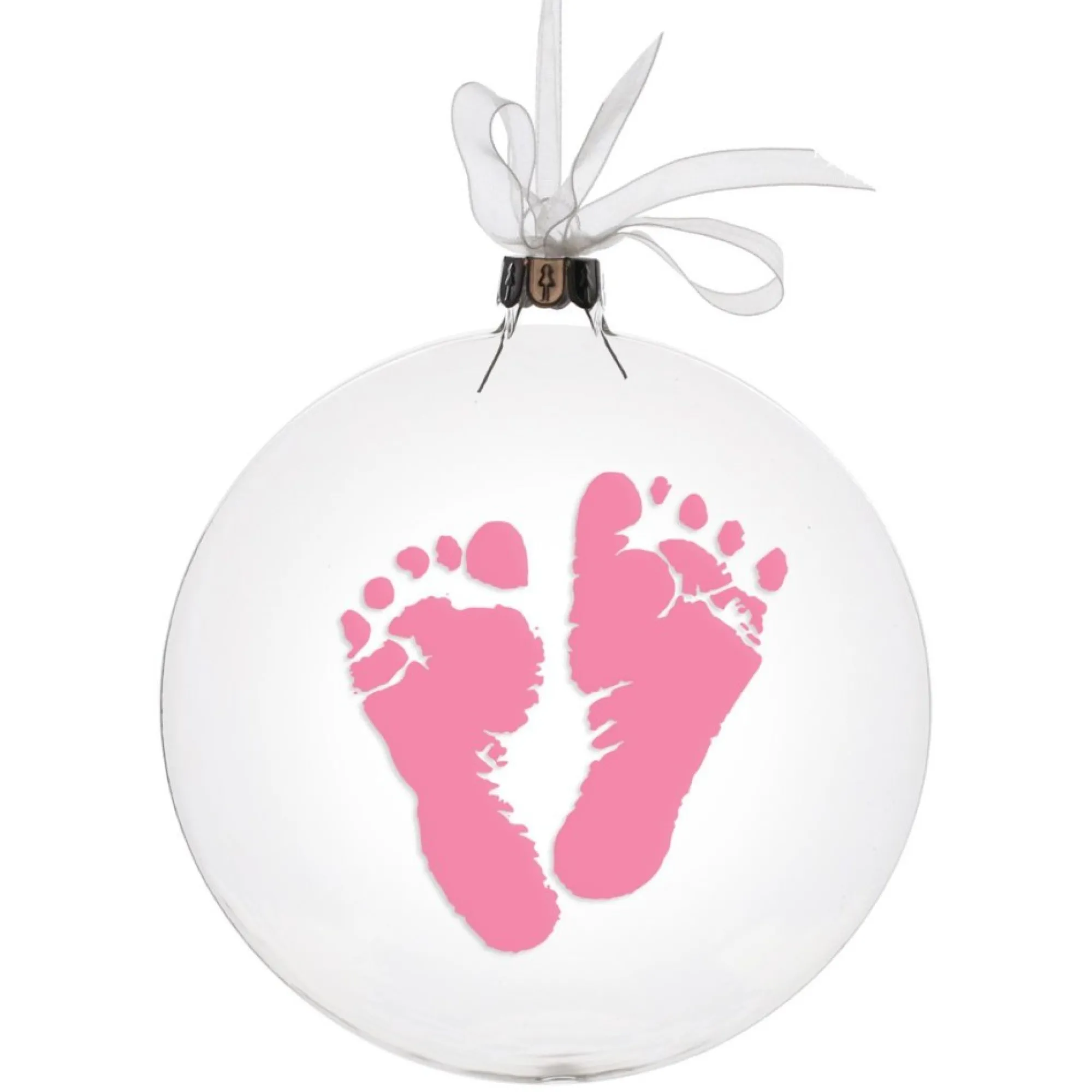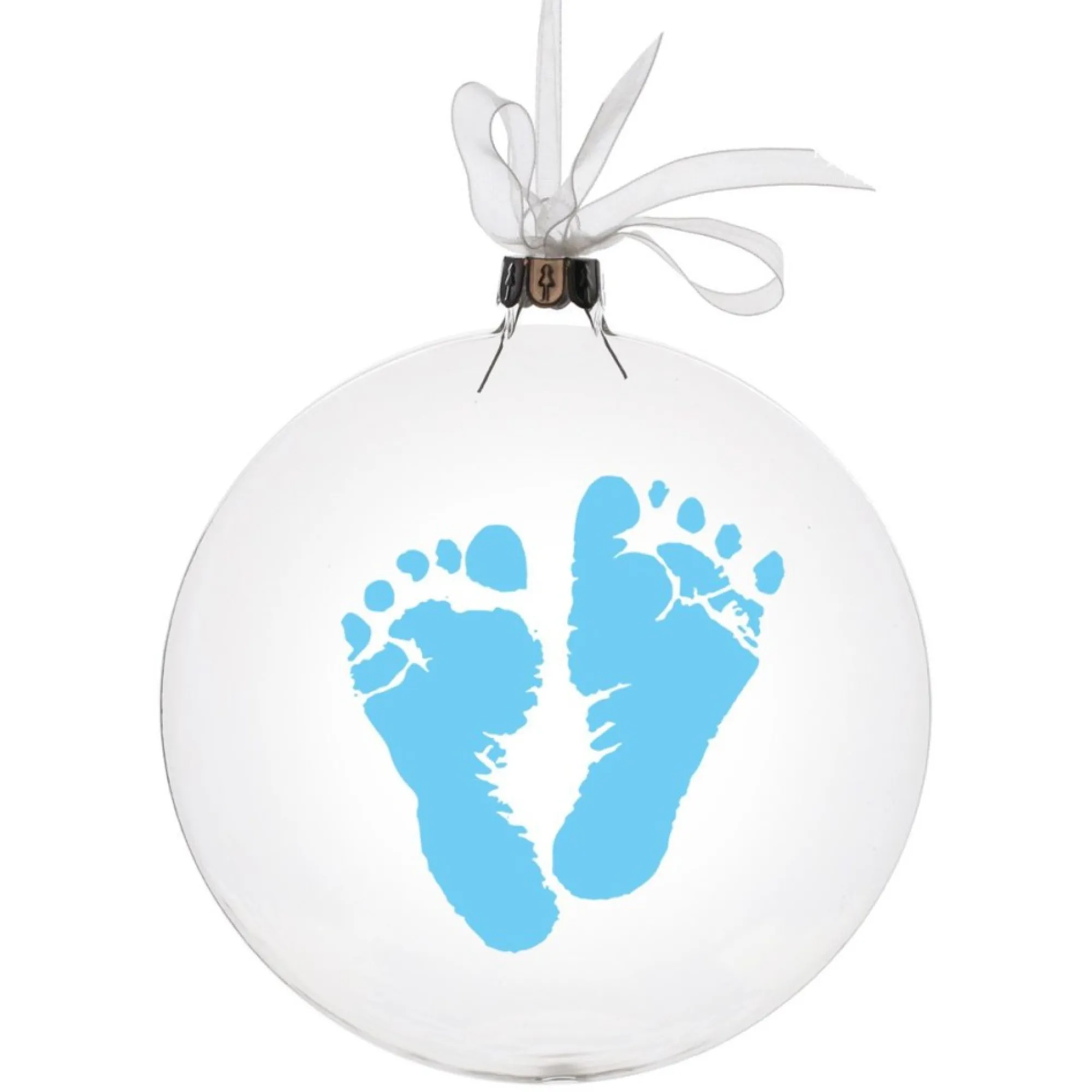 Celebrate The Upcoming Birth Of A New Baby With This Beautiful Glass Disk Ornament Featuring Coloured Baby Footprints. Makes A Unique, Personal Gift Or Keepsake For The Soon-To-Arrive New Member Of The Family. A Glass Hanging Disc Bauble Finished With A White Organza Ribbon Bow Hanger.