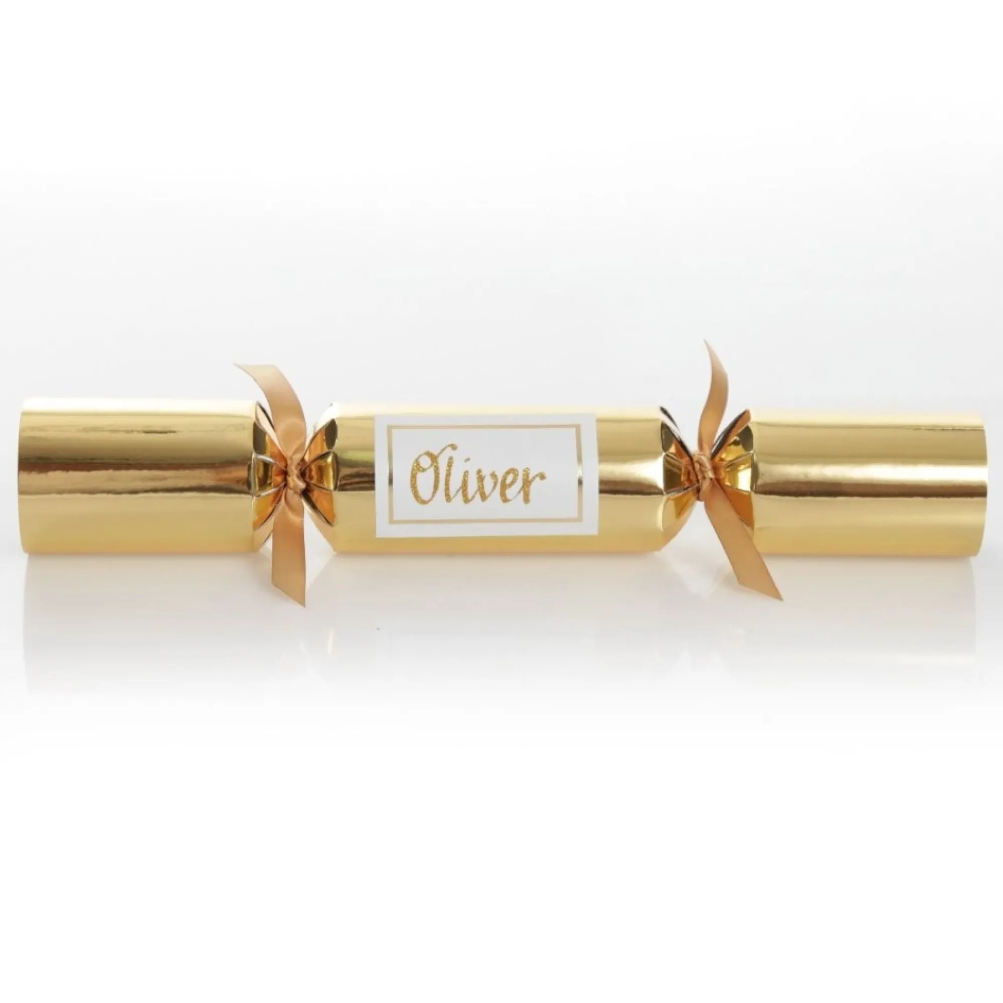 Each Bon Bon Is Made Using A Luxurious Gloss Gold Card And Is Personalised With Our Special Hand-Done Glitter Calligraphy In A Glitter Colour Of Your Choice. Personalised On An Adhesive Decorative Gold-Rimmed Label That You Can Adhere To The Bon Bon At Your Own Leisure, It Is A Wonderful Way To Do Place Settings For Each Person. This Bon Bon Is Designed In The Luxe Gold Style And Features A Gold Satin Ribbon At Each End. Each Cracker Contains A Hat, Snap, Joke/Motto And Gift, Which Include One Of The Following: Jumping Frog, Paper Clip, Plastic Angel, Nail Through Finger Trick, Moustache, Toy Car, Magic. Mini Comb & Spinner.