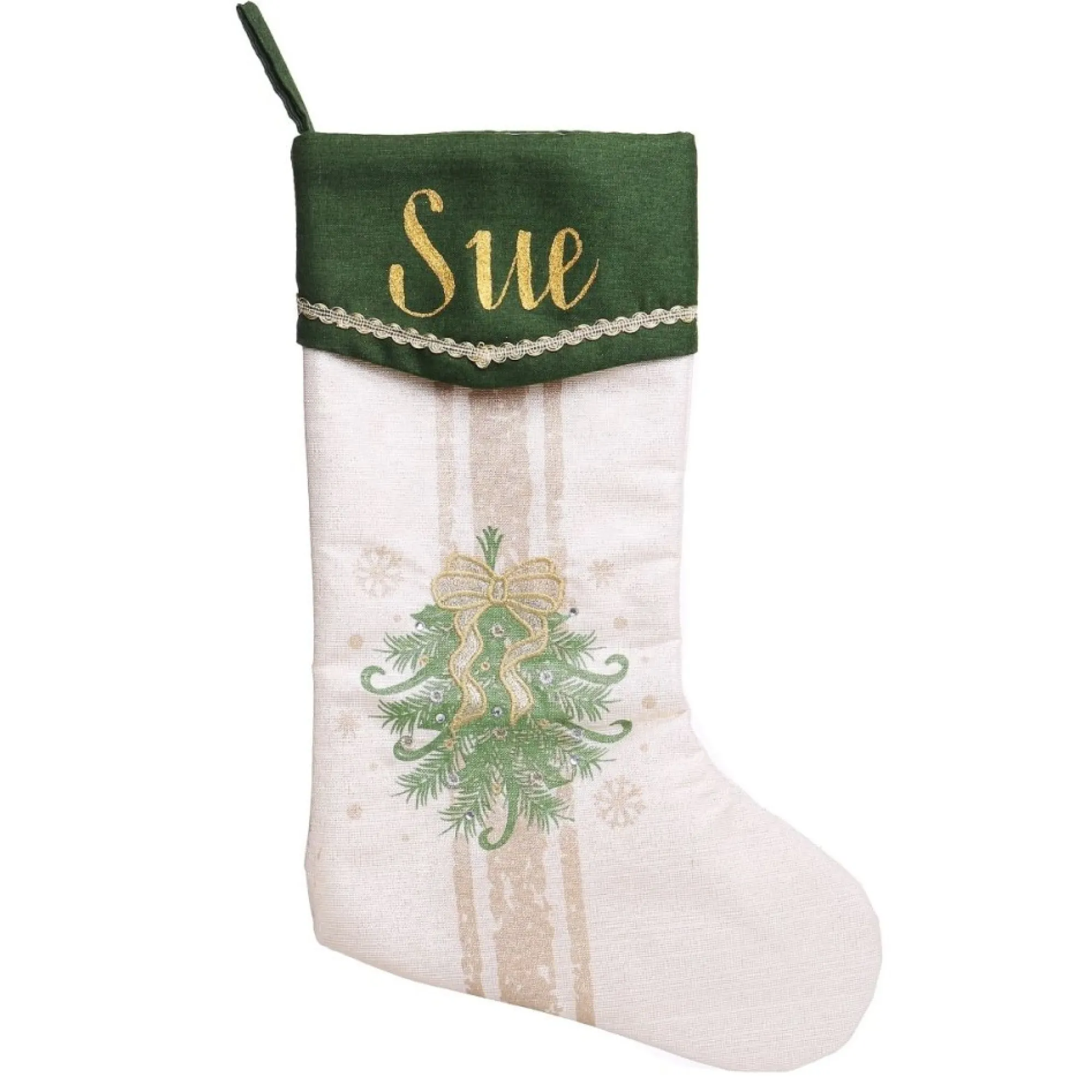 If You Love Creating Beautiful Displays In Your Home During The Christmas Season, You Will Love This Personalised Green And Gold Mistletoe Christmas Stocking. Made From Fresh Cotton With Delicate Gold Glitter Detail On The Cuff, This Stocking Features A Green And Gold Poinsettia Design. Personalised Stockings Are Such A Beautiful Gift For Friends And Family And Can Be Used To Add Something Unique And Personal To Your Own Christmas Display. This Stocking Can Be Used To Fit A Traditional Theme Paired With Green, Gold, And Neutral Tones With Touches Of Foliage And Exposed Wood. Pair With Our Poinsettia Stocking, And Christmas Tree Skirt In The Same Design. Turn Your Home Into A Beautiful Christmas Display Or Gift Loved Ones With This Memorable And Personalised Christmas Keepsake.