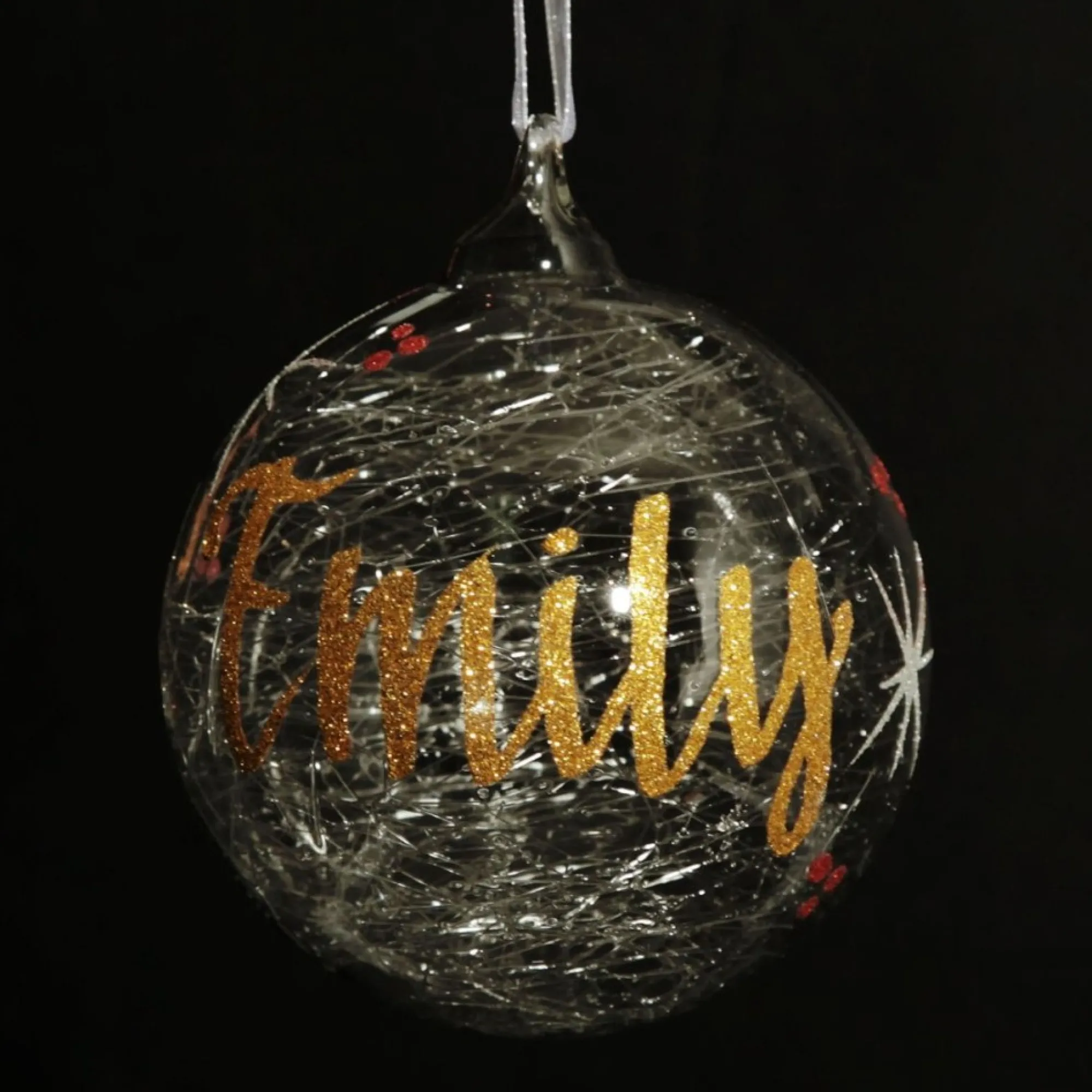 Personalisation: Our Highly Trained Artists Are Experienced In All Forms Of Personalisation And Will Create A Beautiful Keepsake That Will Be Cherished For Years To Come. Choose Your Text Style. Style 1-6 For Vinyl Lettering (Only Available For 8Cm And 10Cm Baubles) Or Style 7 Glitter Calligraphy (Available For 6Cm, 8Cm And 10Cm Baubles). Add A Name, Optional Year On The Back. Additional Message Allowed On The Back For 10Cm Only.