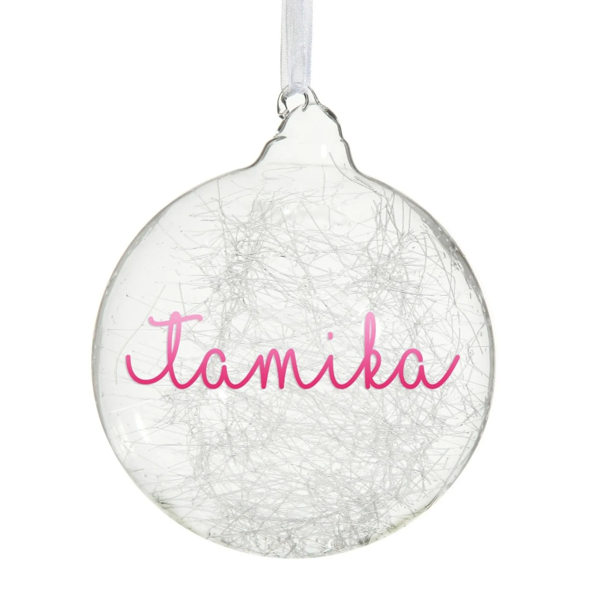 Add Something Unique To Your Christmas Tree With This Stunning Icicle Glass Personalised Christmas Bauble. Made From Seamless, High Quality, And Hand Spun Glass, This Delicate Bauble Will Add Some Sparkle To Your Home! Featuring An Elegant White Ribbon, Ready To Hang On Your Tree Or One Of Our Display Hangers, This Personalised Bauble Is An Excellent Way To Add Something Unique To Your Home This Christmas. You Will Love Using This Shining Bauble To Decorate Your Tree Each Year As It Will Reflect Your Christmas Tree Lights And Add Shimmer To Any Style You Choose! Popular For Boys And Girls Of All Ages, This Bauble Is Perfect For All Members Of The Family, Or To Give As A Precious And Memorable Gift In One Of Our Gift Boxes. Simply Add A Name And Year To Create A Personal Christmas Gift For Your Loved Ones. Create Wonderful, Lasting Memories For Years To Come By Choosing This Unique Bauble For Your Collection.